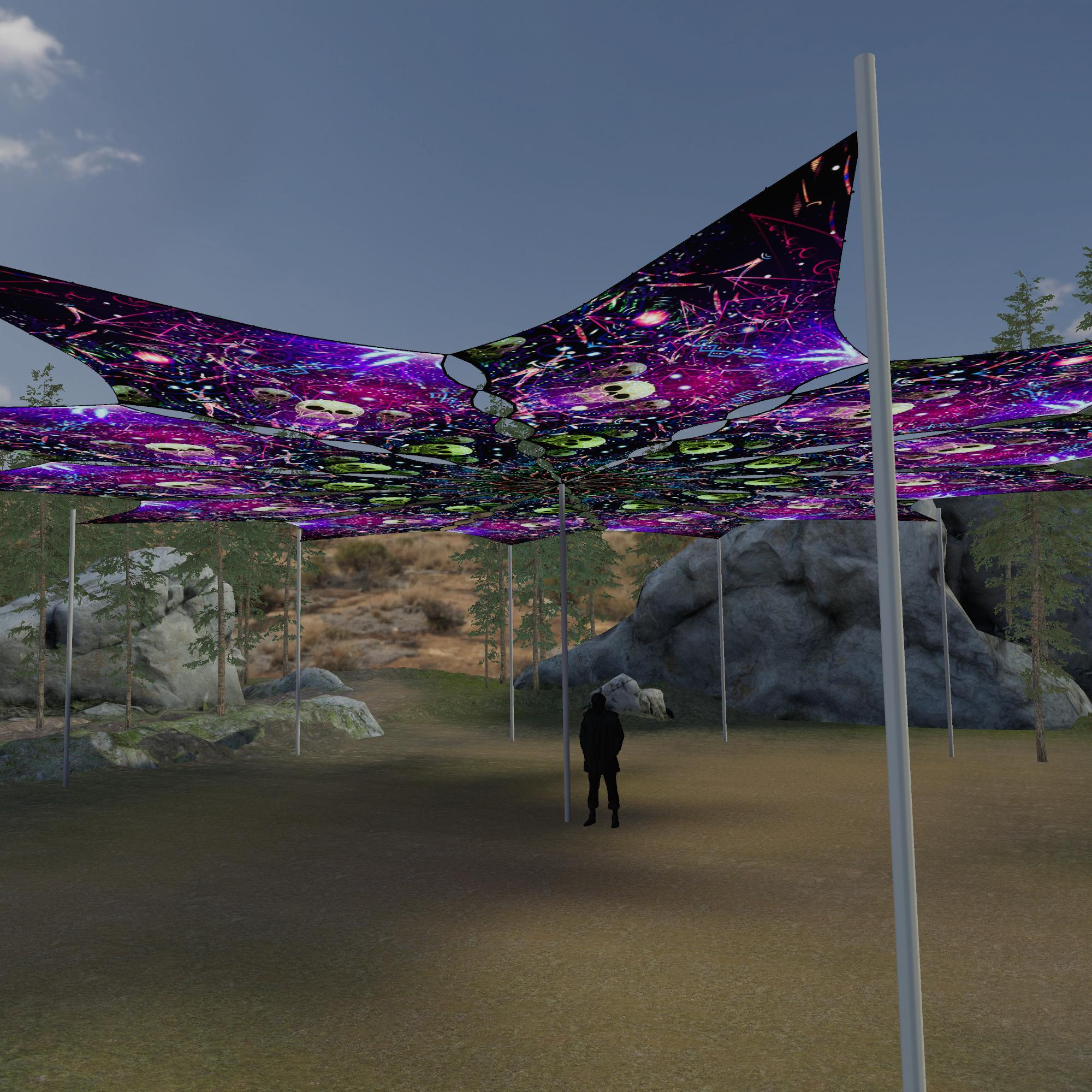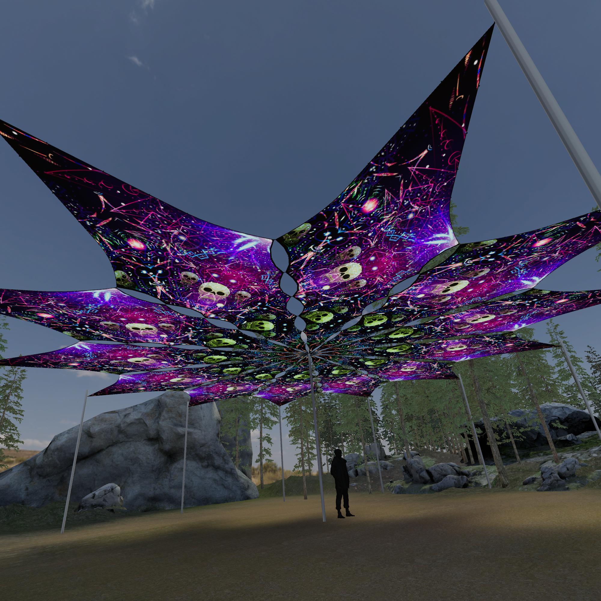 Alien Enlightenment – Space Skulls – 12 Petals – Ceiling Decoration – Stretchable Fabric UV-Reactive Canopy