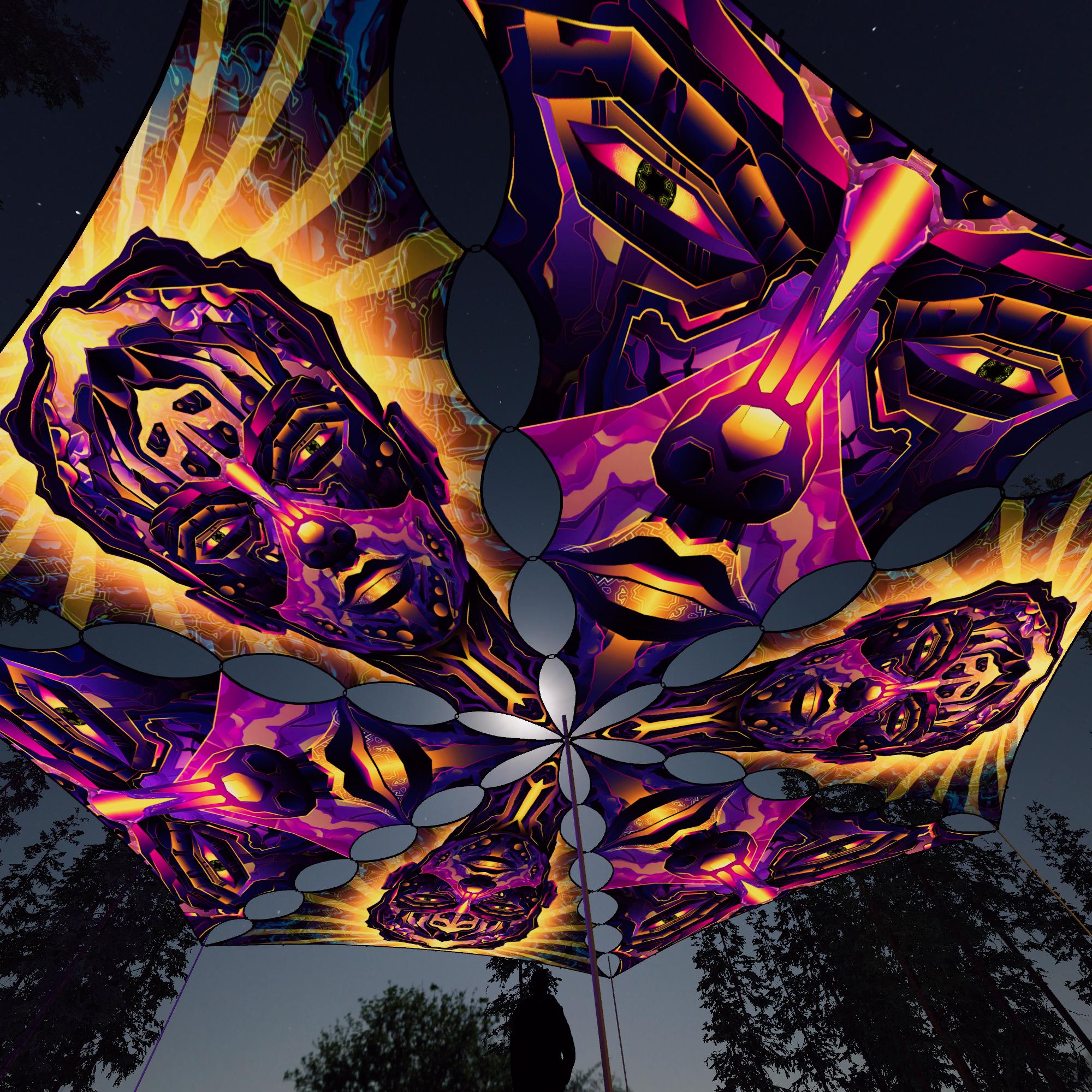 Astra Solaris – AS-TR01 and AS-TR02 – 6 Triangles – Ceiling Decoration – Stretchable Fabric UV-Reactive Canopy