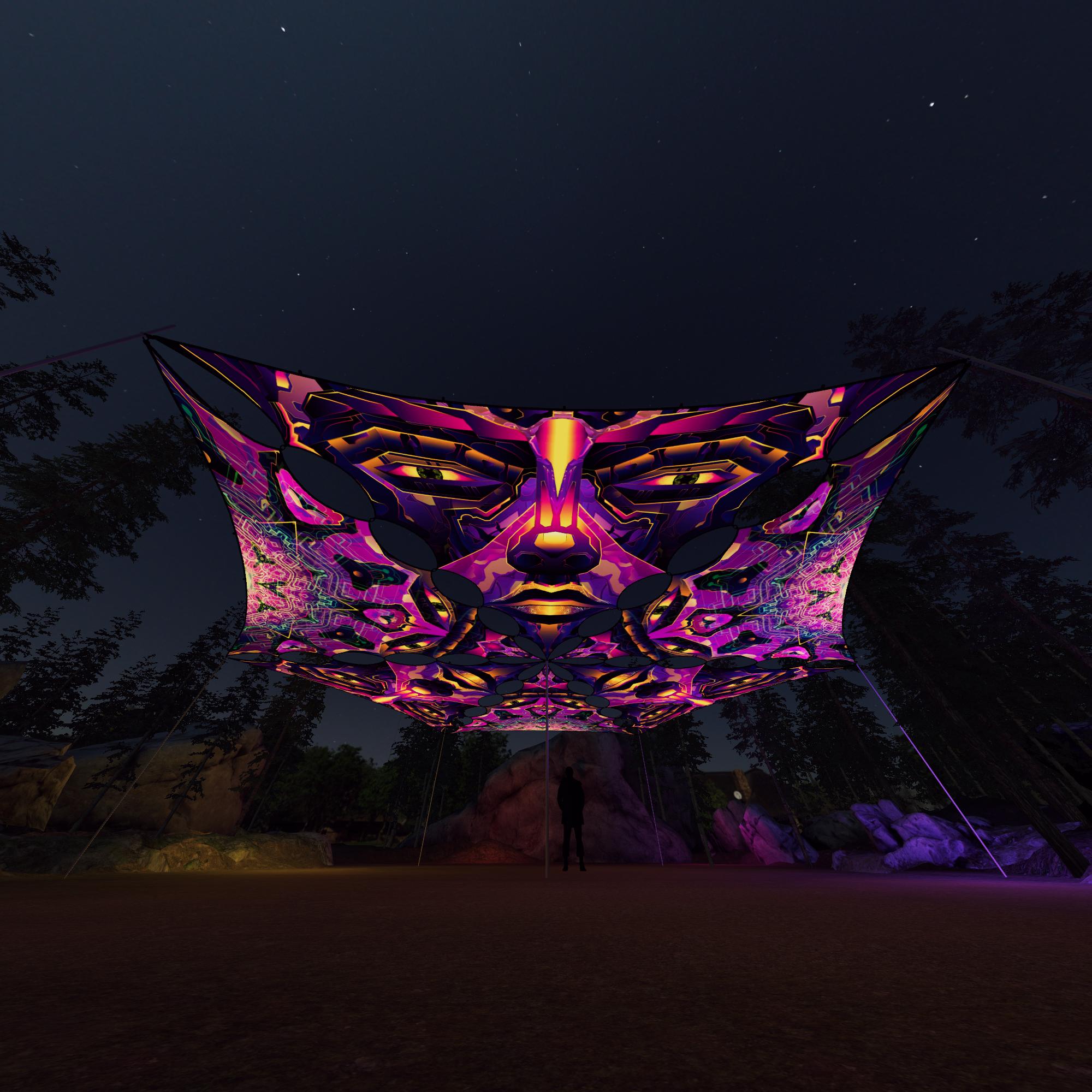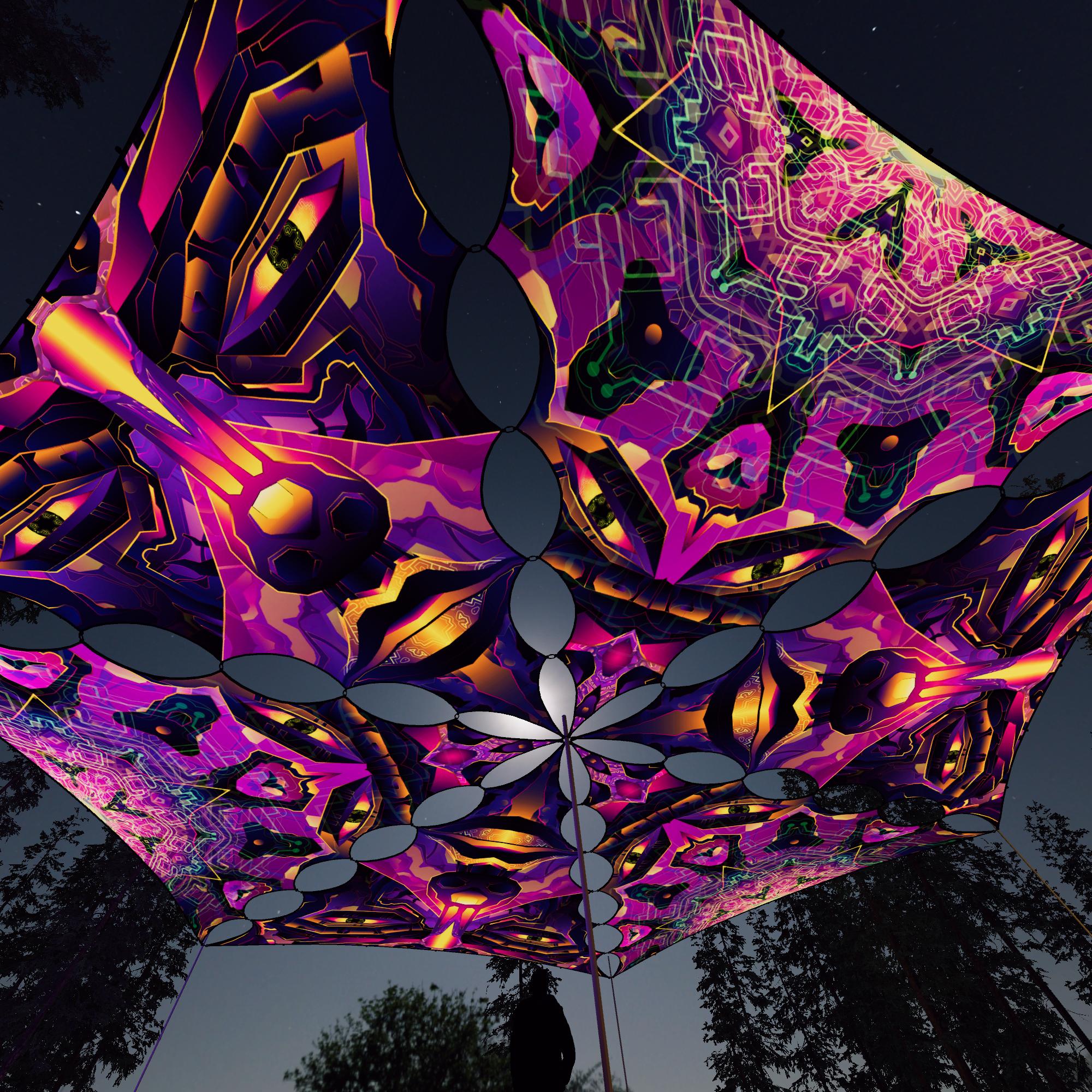 Astra Solaris – AS-TR02 and AS-TR03 – 6 Triangles – Ceiling Decoration – Stretchable Fabric UV-Reactive Canopy
