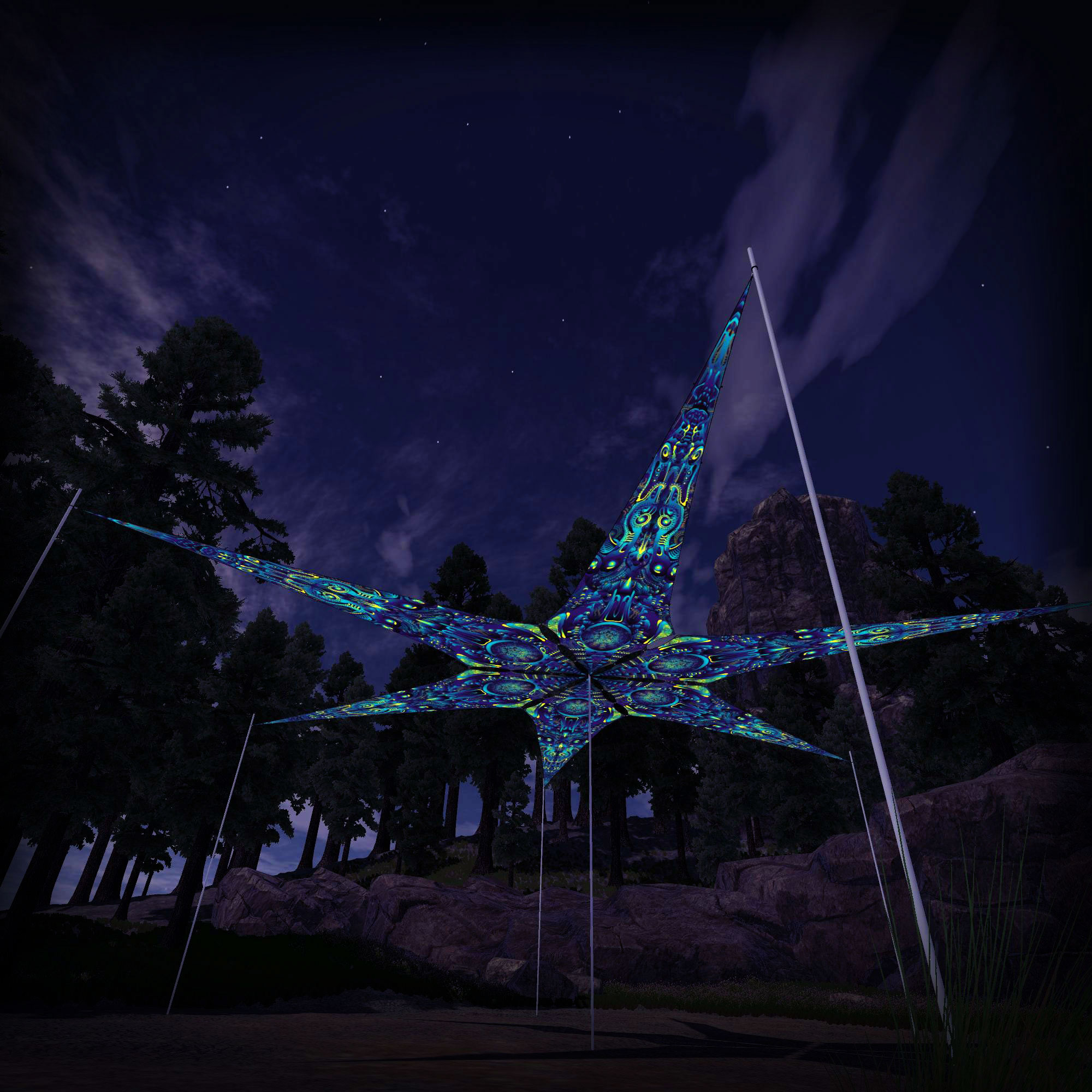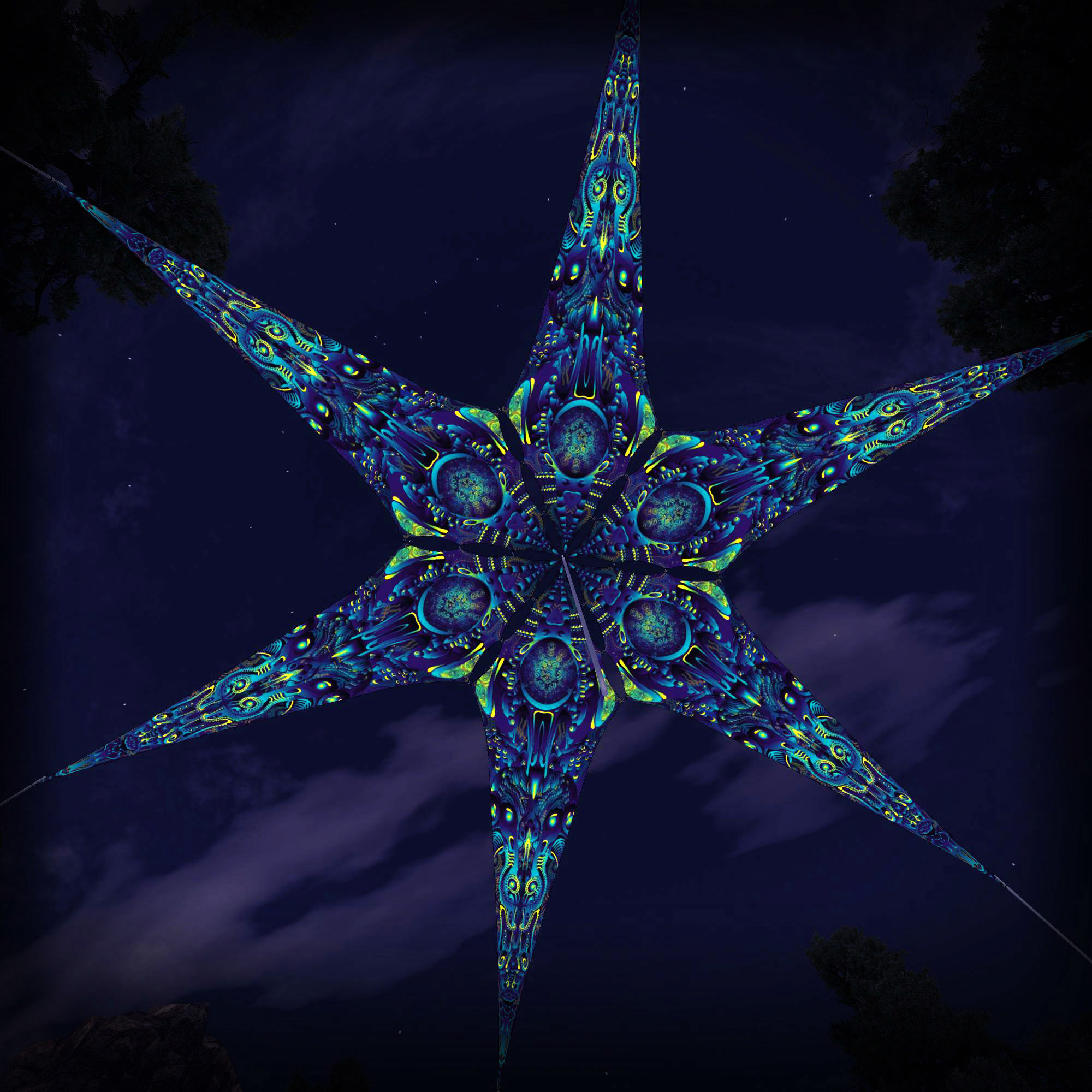 Chimera Protocol – Neuro-Hybrid – 6 Petals – Ceiling Decoration – Stretchable Fabric UV-Reactive Canopy