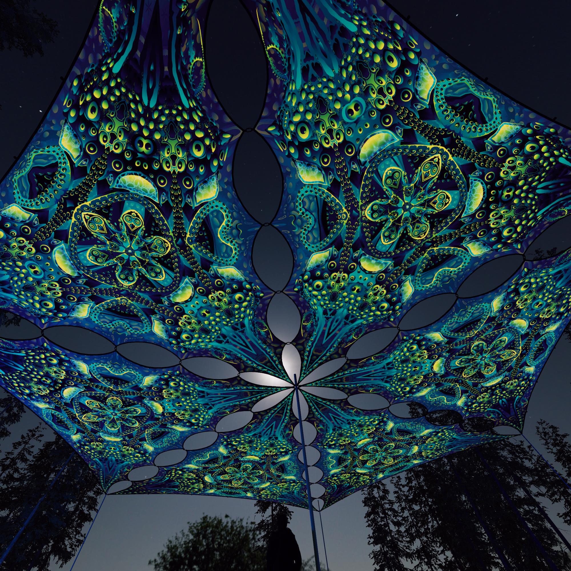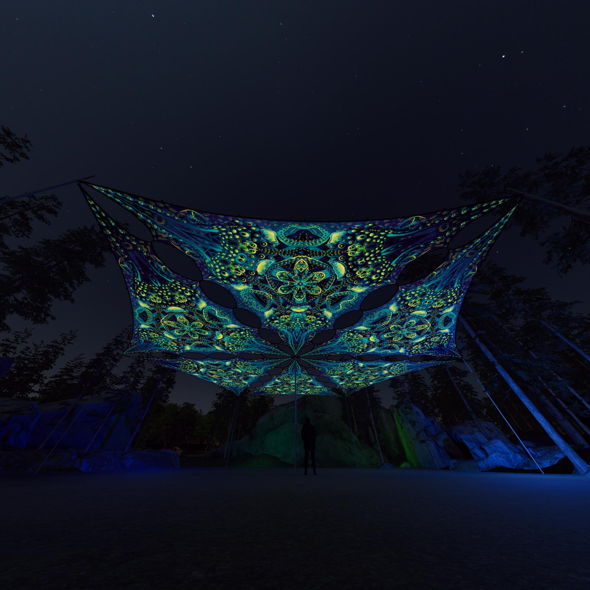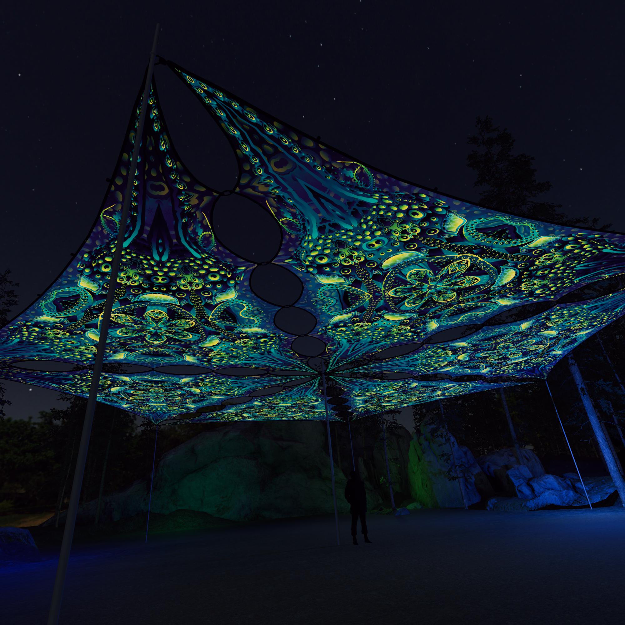 This UV-reactive canopy is perfect for decorating a space of any size:
