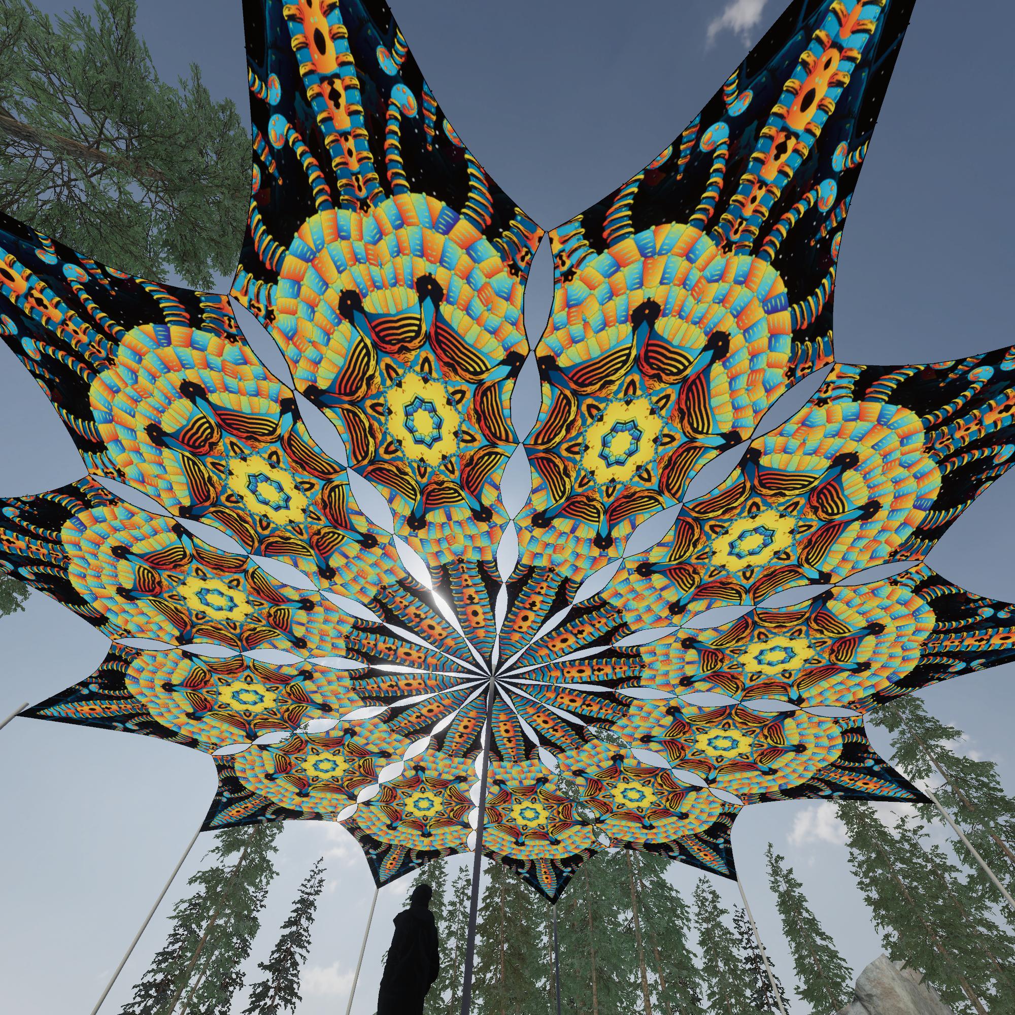 Cyber Venus – Radiance – 12 Petals – Ceiling Decoration – Stretchable Fabric UV-Reactive Canopy