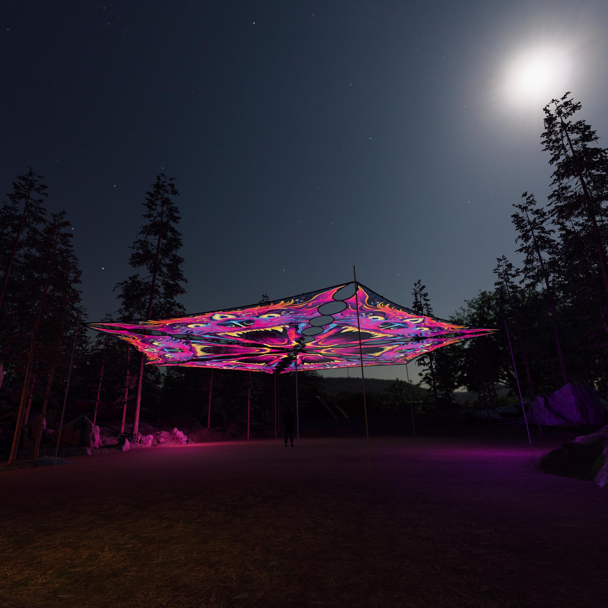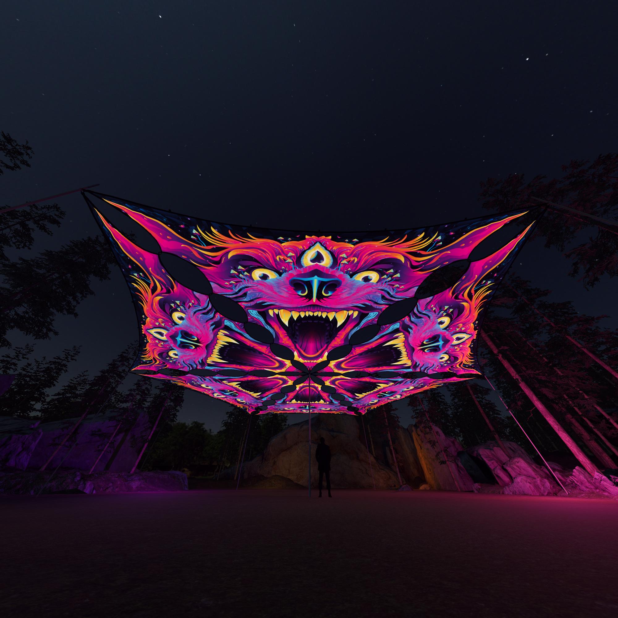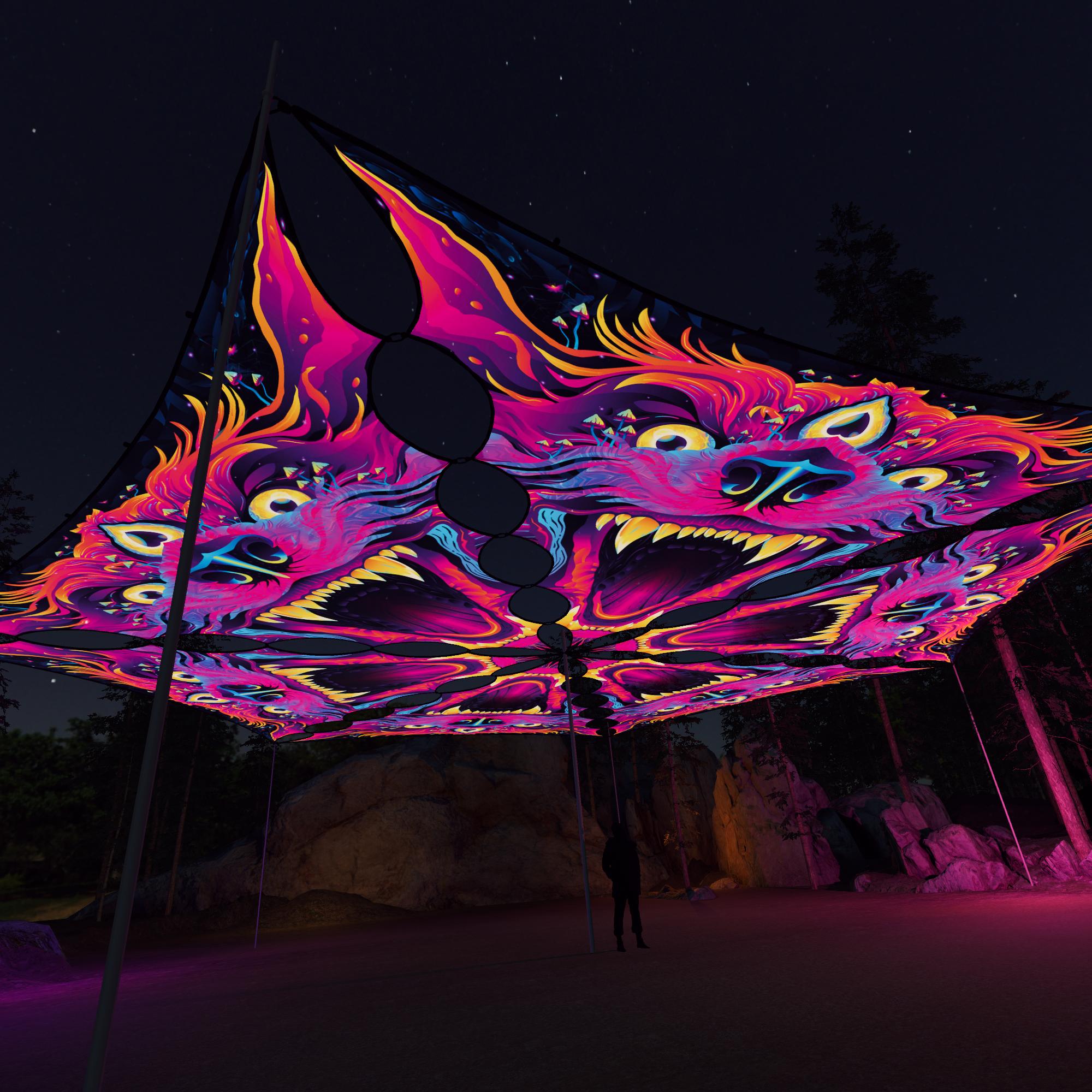 Enchanted Shadows – ES-TR01 – 6 Triangles – Ceiling Decoration – Stretchable Fabric UV-Reactive Canopy