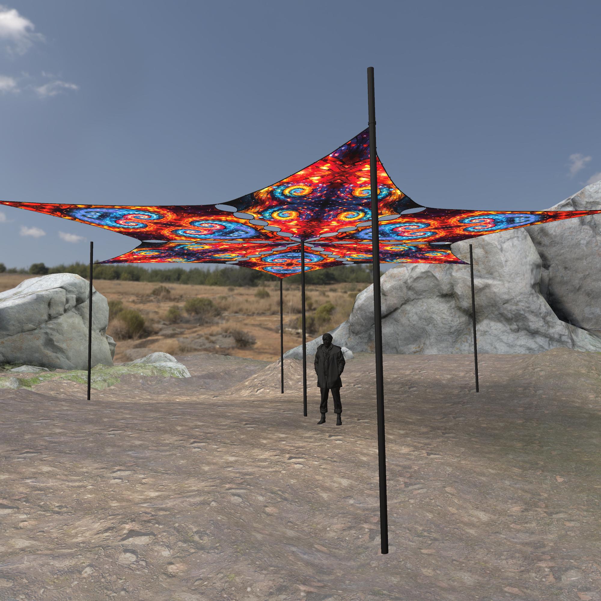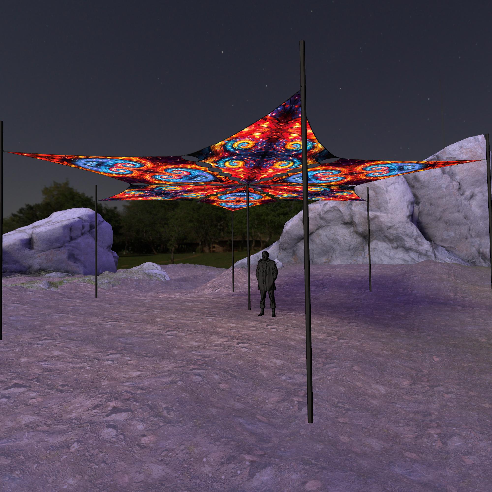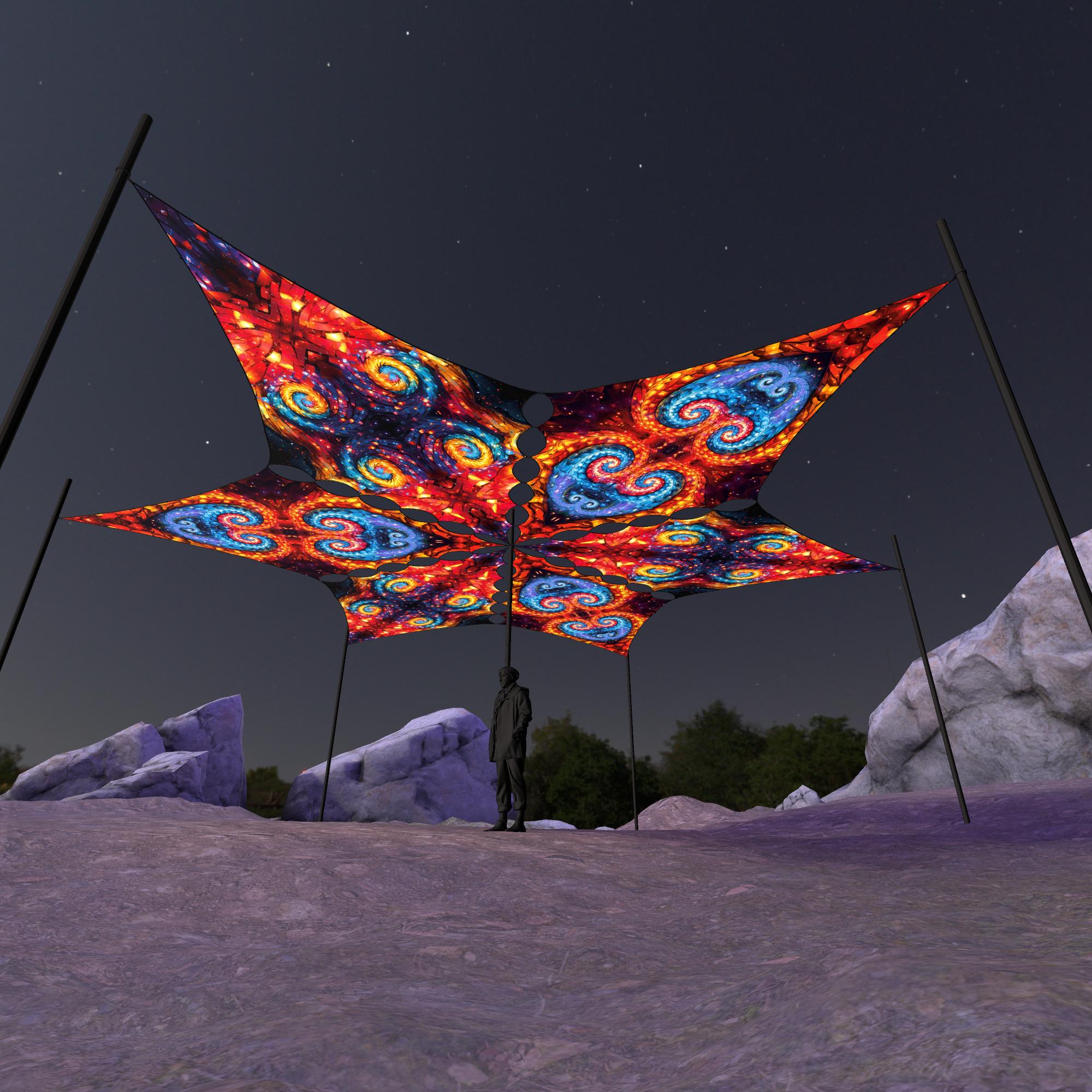 Endless Vortex – EV-DM03 and EV-DM01 – 6 Diamonds – Ceiling Decoration – Stretchable Fabric UV-Reactive Canopy