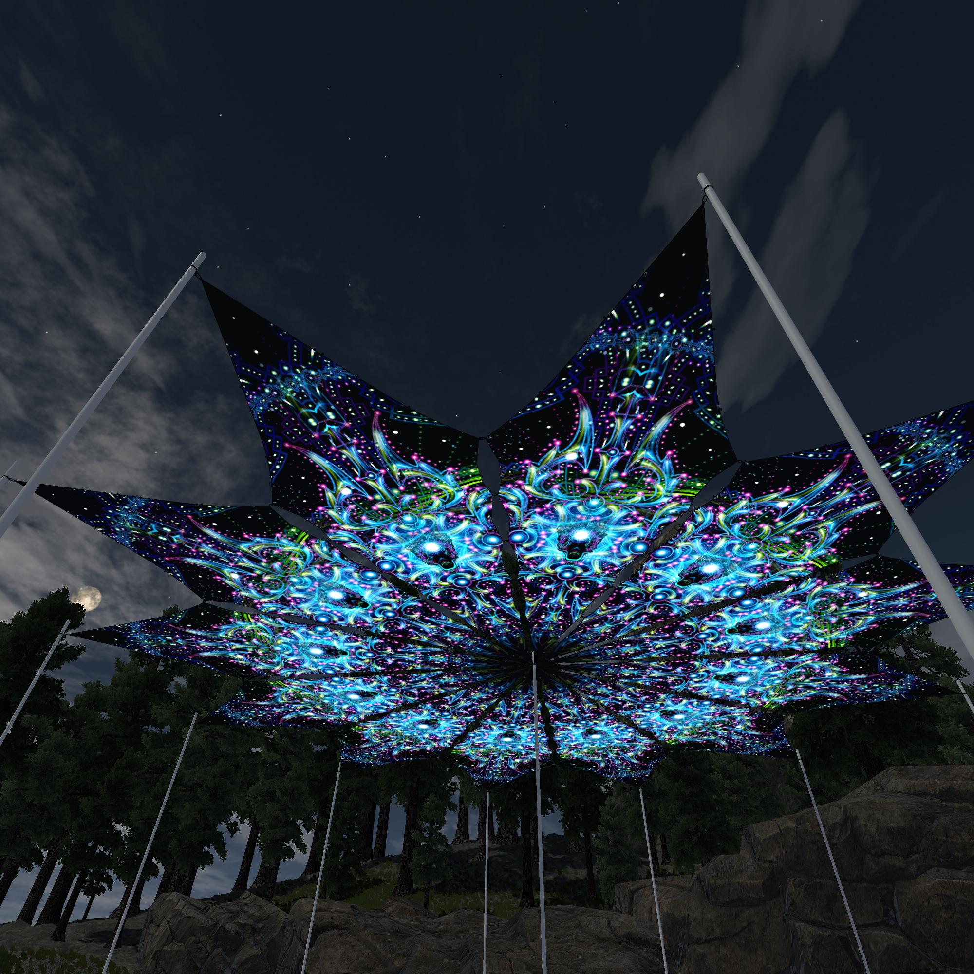 Enlightenment – Blue Adept – 12 Petals – Ceiling Decoration – Stretchable Fabric UV-Reactive Canopy