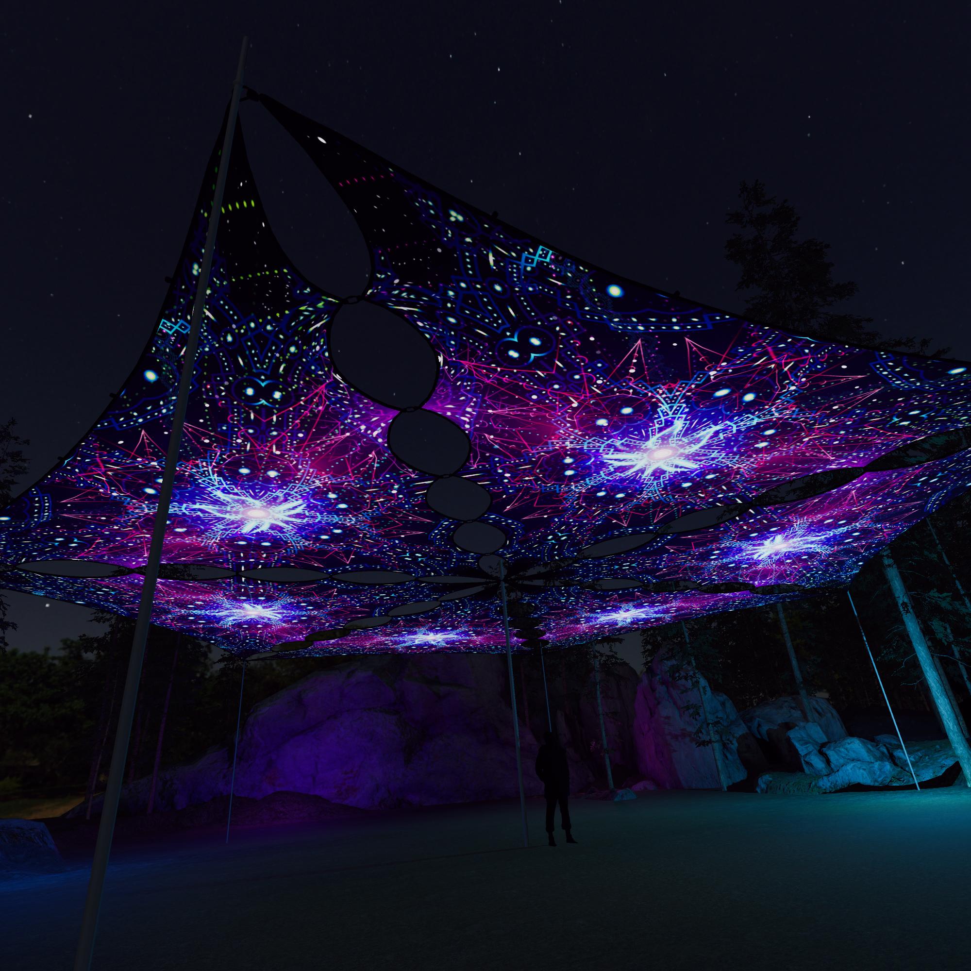 Enlightenment – EN-TR03 – 6 Triangles – Ceiling Decoration – Stretchable Fabric UV-Reactive Canopy