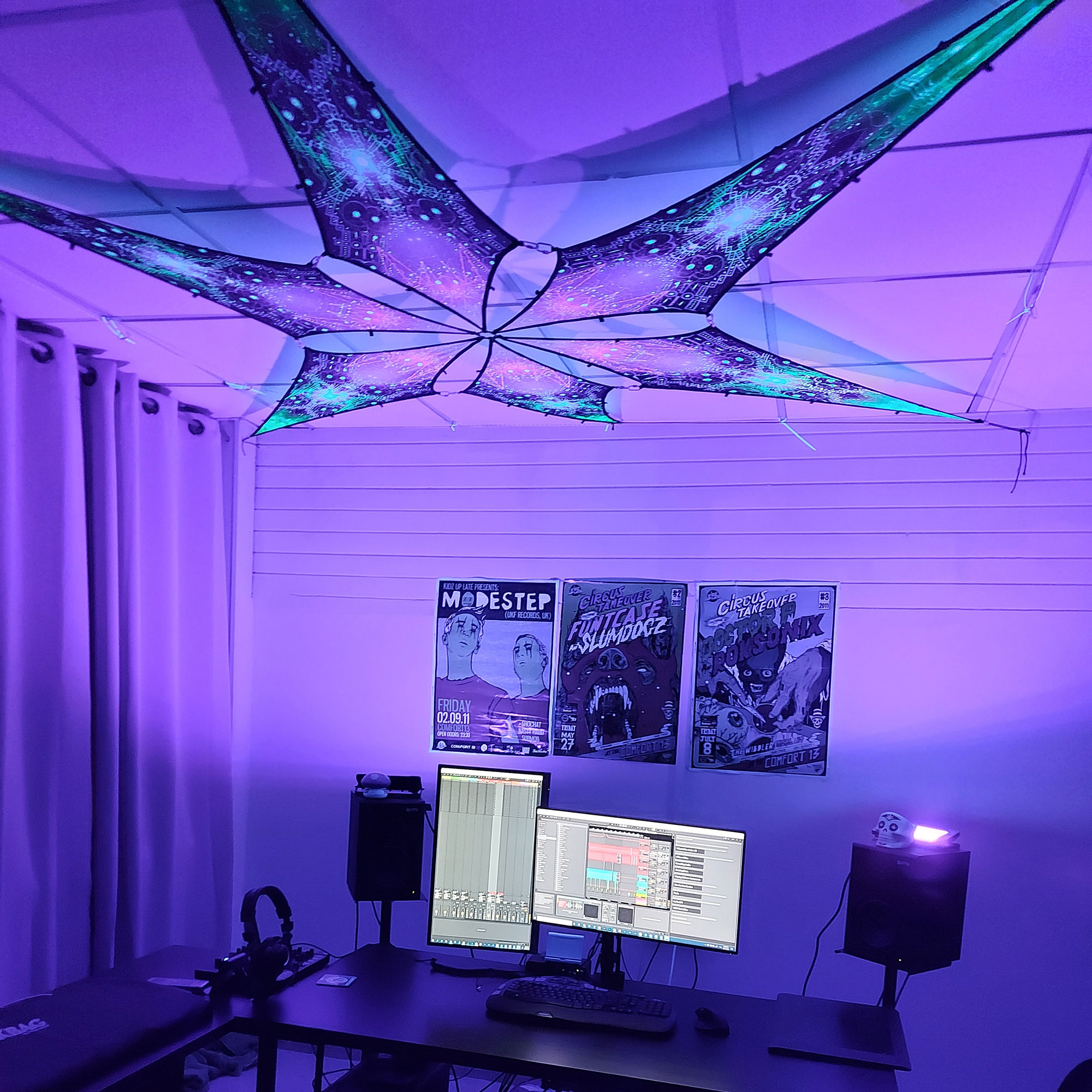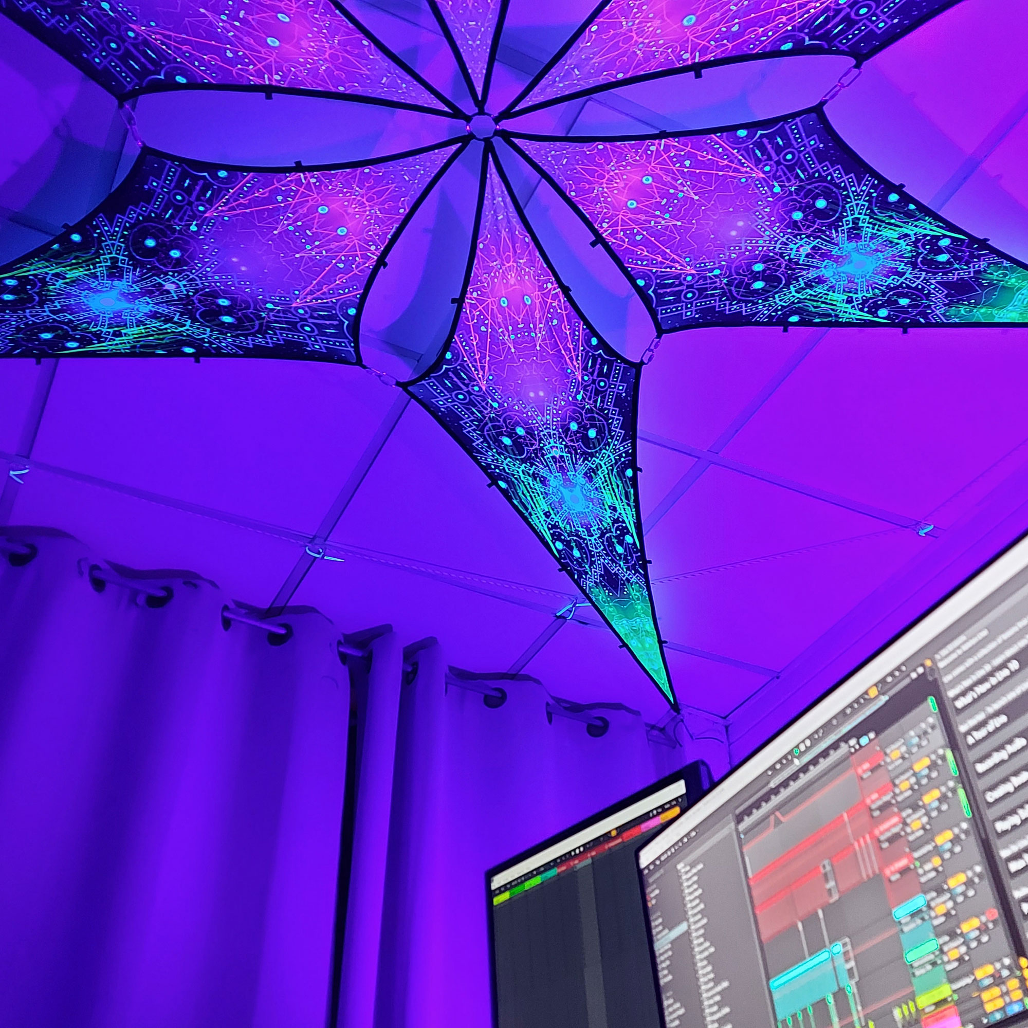 Enlightenment – Geometry Galaxy – 6 Petals – Ceiling Decoration – Stretchable Fabric UV-Reactive Canopy