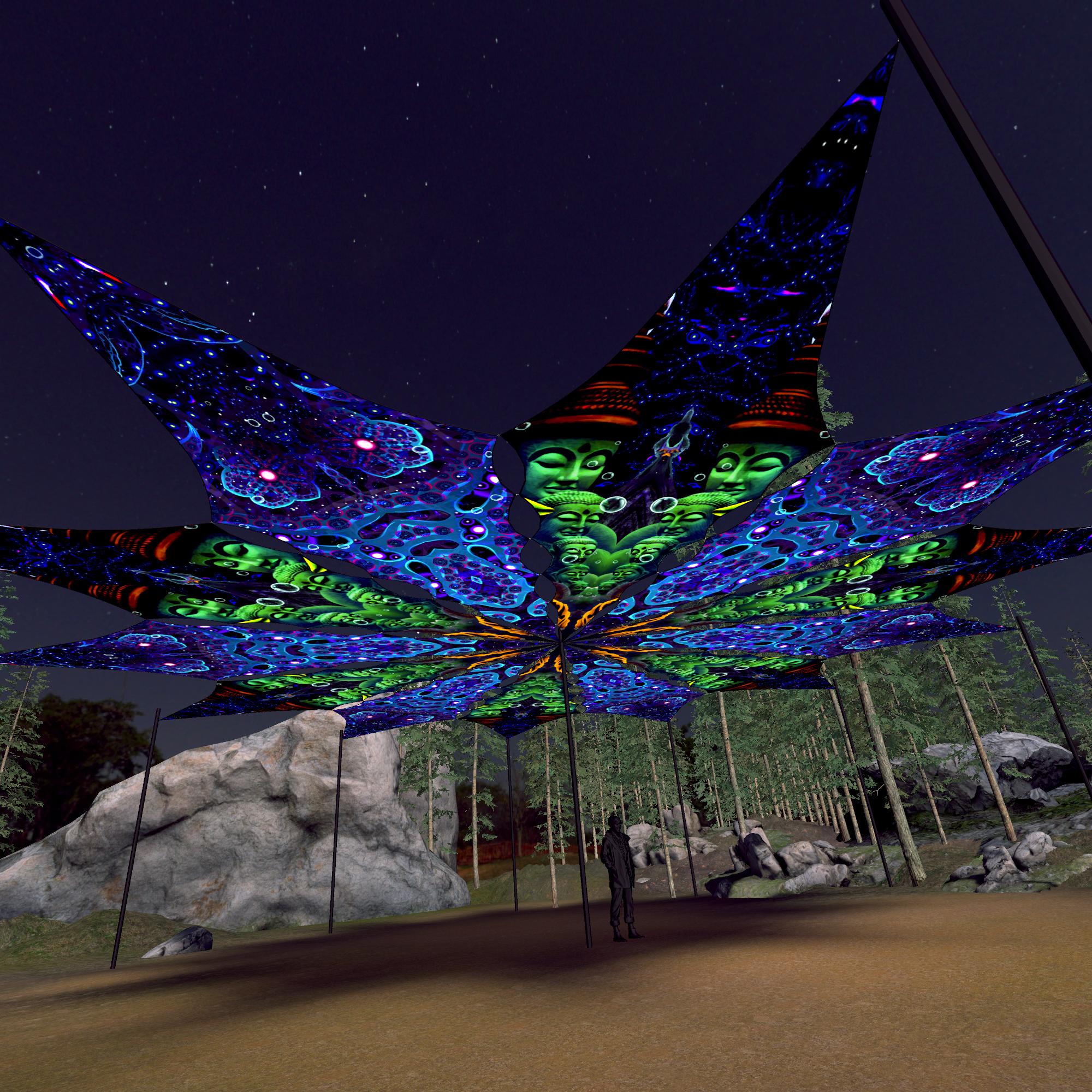 Epic Underwater Kingdom – Deep Sea and Emerald Buddha – 12 Petals – Ceiling Decoration – Stretchable Fabric UV-Reactive Canopy
