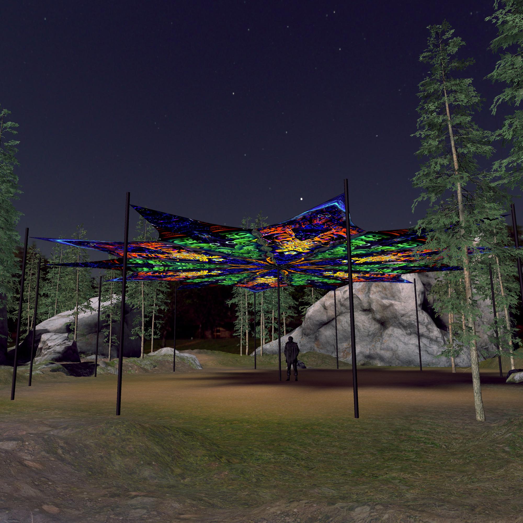 Epic Underwater Kingdom – Emerald Buddha and Golden Buddha – 12 Petals – Ceiling Decoration – Stretchable Fabric UV-Reactive Canopy