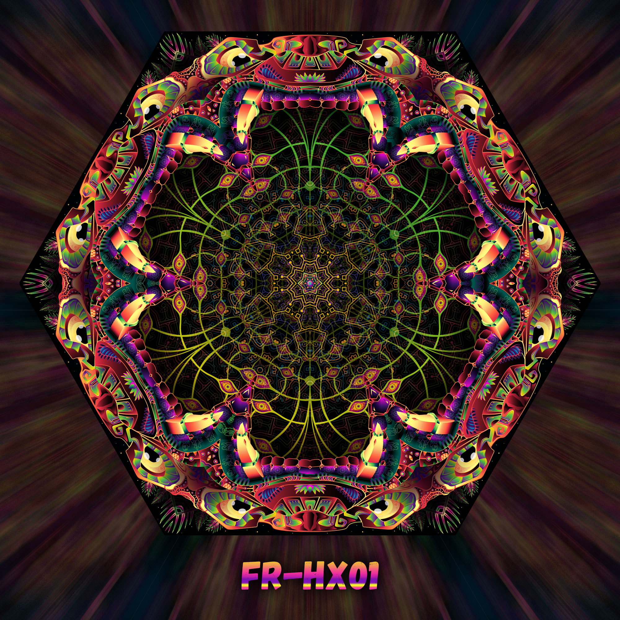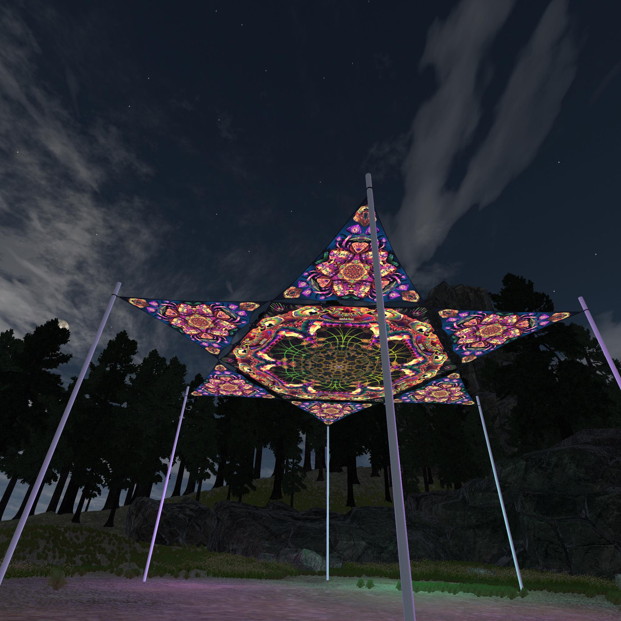 Fungal Rift – 1 Hexagon and 6 Diamonds – V4 – Ceiling Decoration – Stretchable Fabric UV-Reactive Canopy