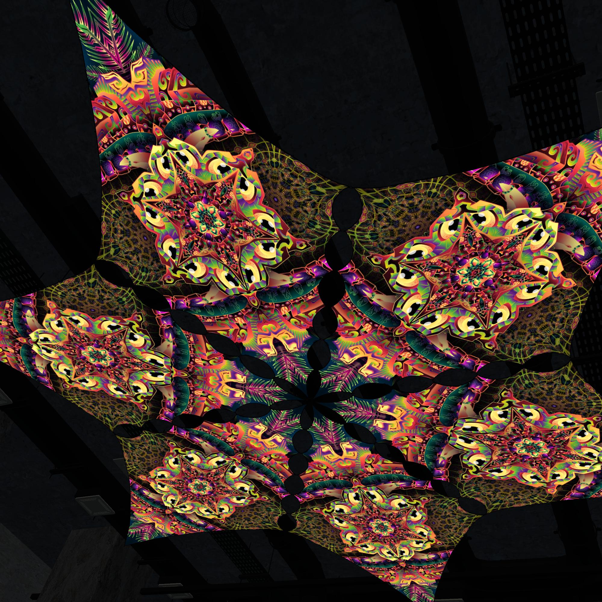 Fungal Rift – FR-DM02 – 6 Diamonds – Ceiling Decoration – Stretchable Fabric UV-Reactive Canopy