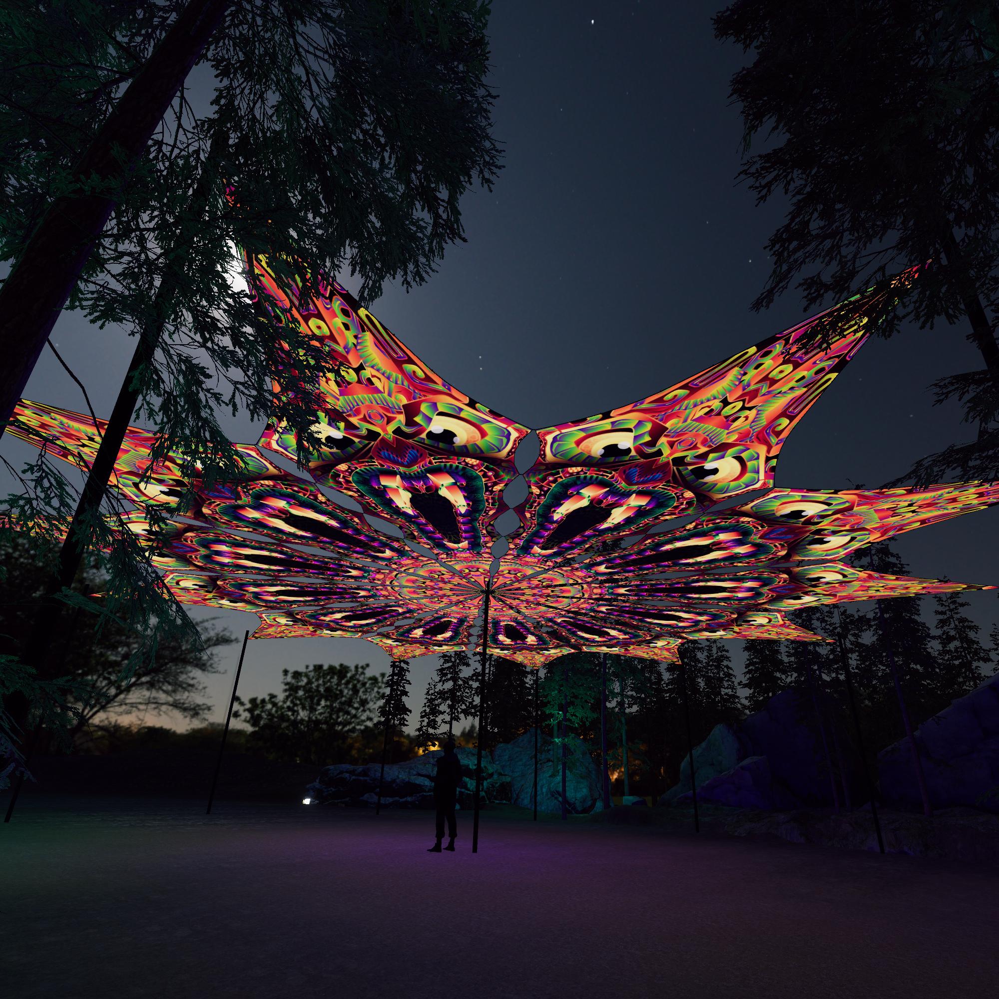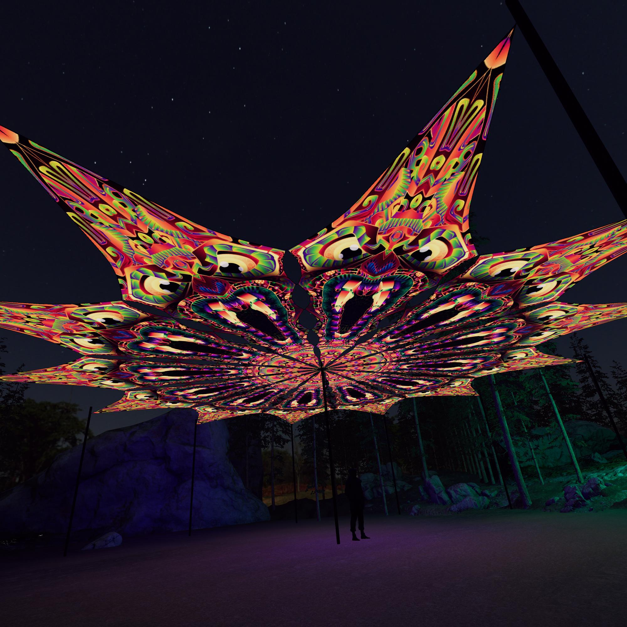 Fungal Rift – FR-PT01 – 12 Petals – Ceiling Decoration – Stretchable Fabric UV-Reactive Canopy