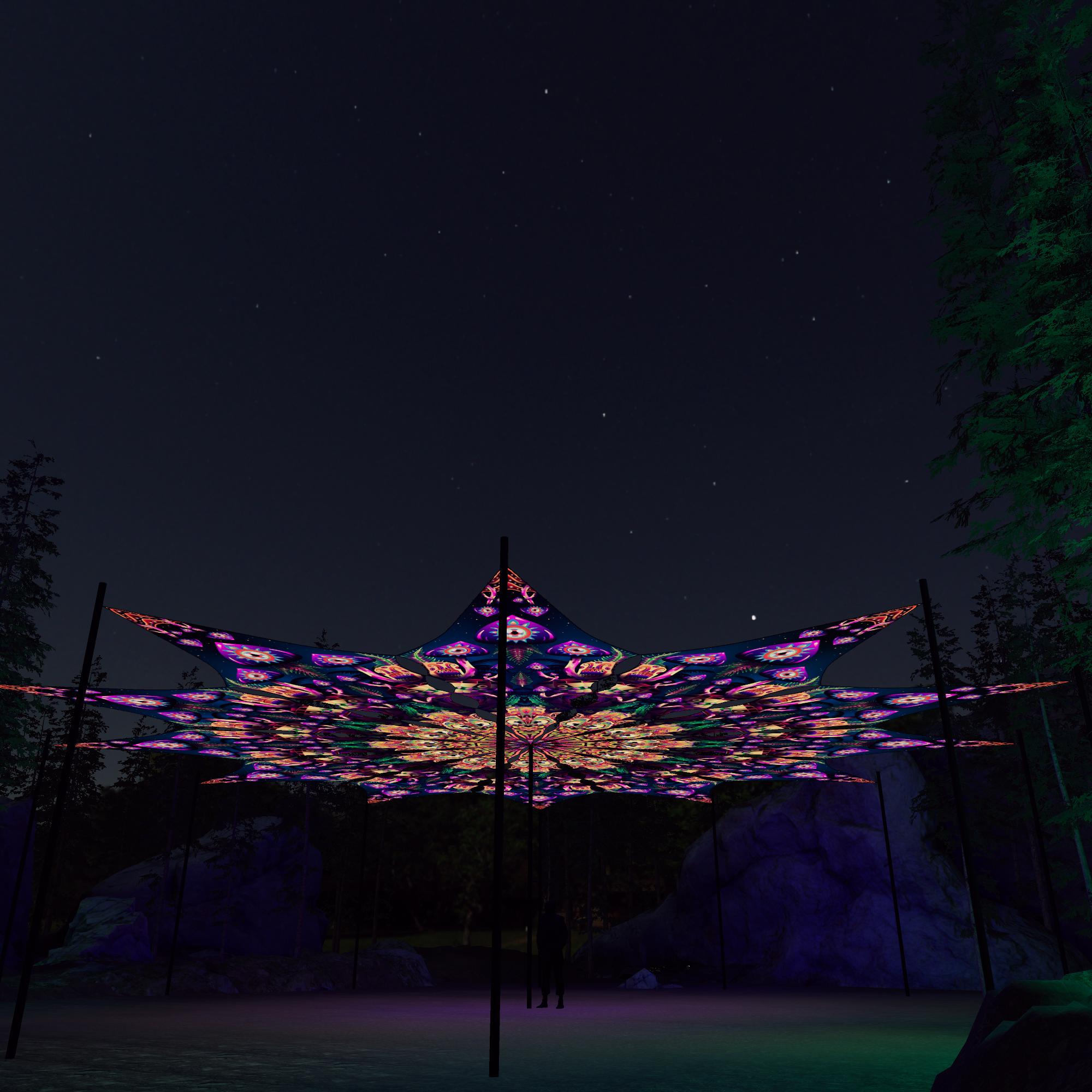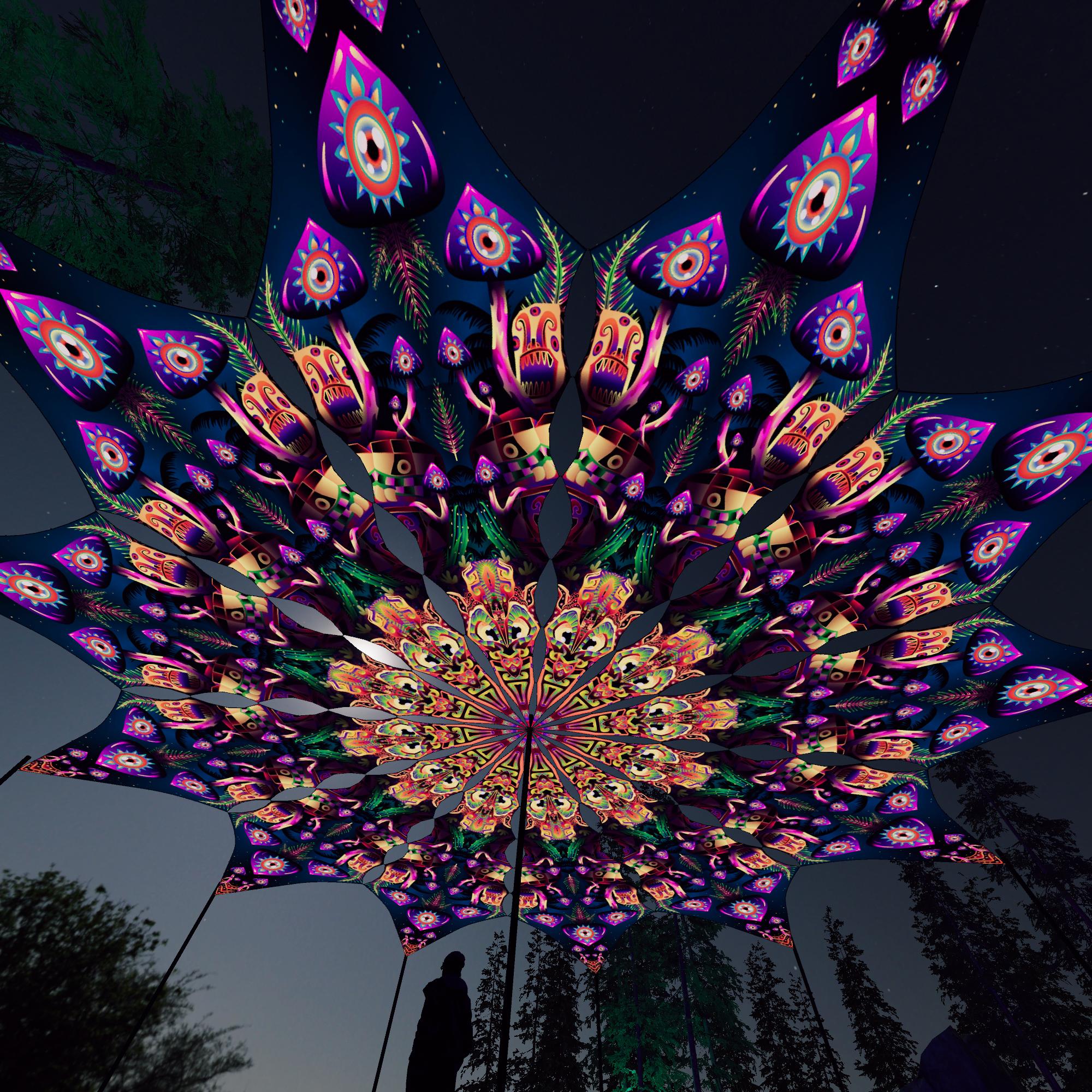 Fungal Rift – FR-PT04 – 12 Petals – Ceiling Decoration – Stretchable Fabric UV-Reactive Canopy