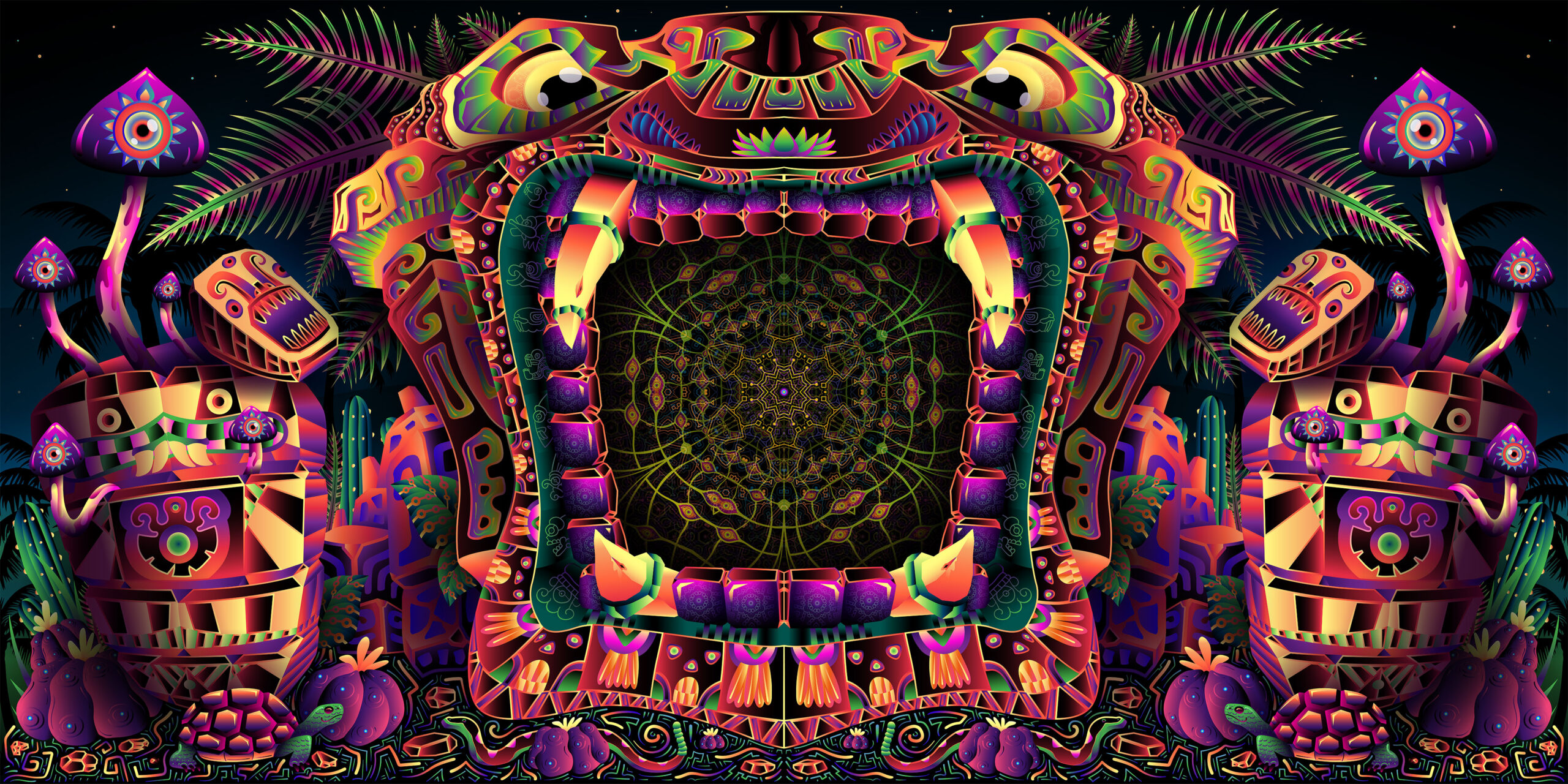 Fungal Rift – Psychedelic UV-Reactive DJ Booth – Psytrance Party Decoration