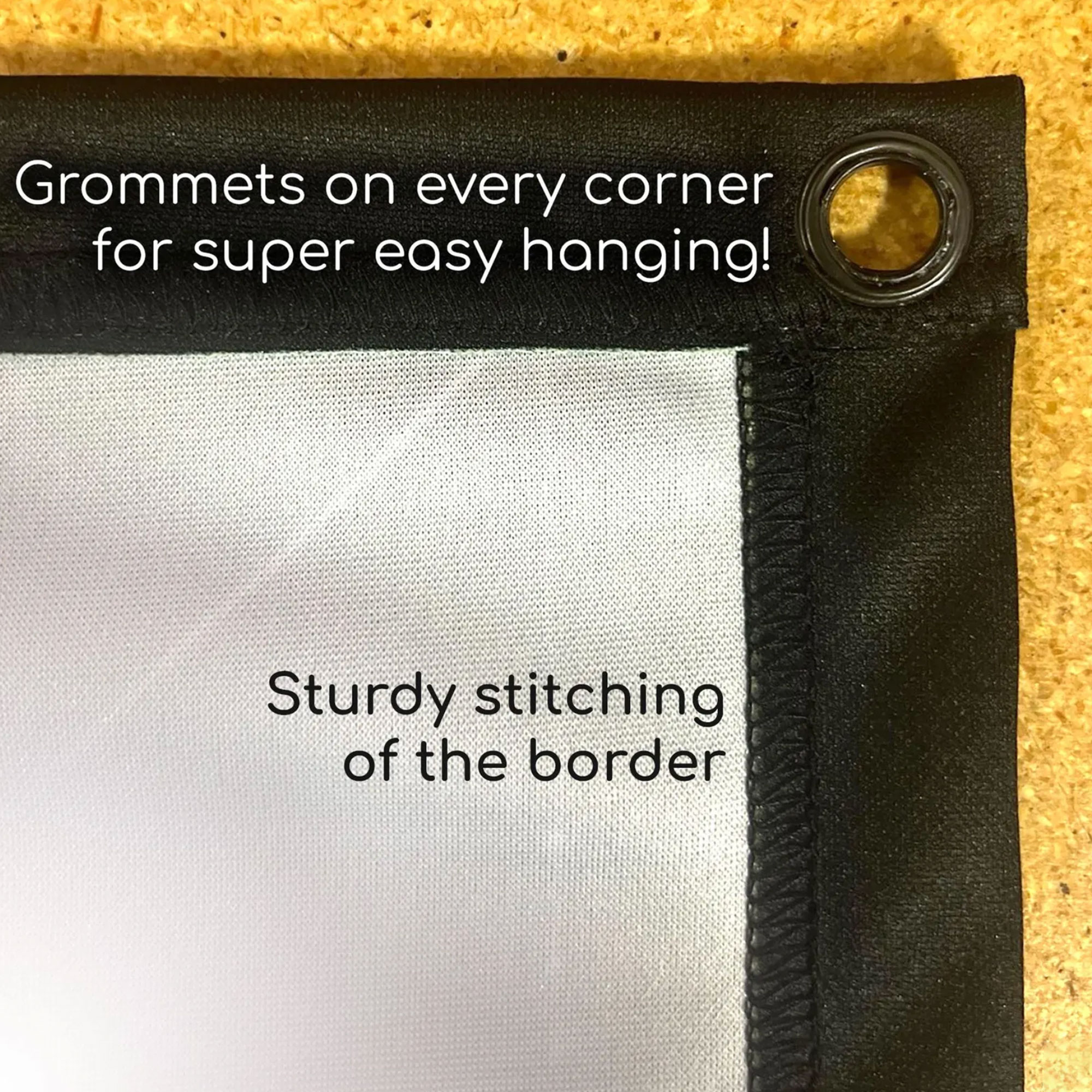 ✓ Loops on the corners for easy installation on Stretchable materials and Grommets on Non-Stretch material