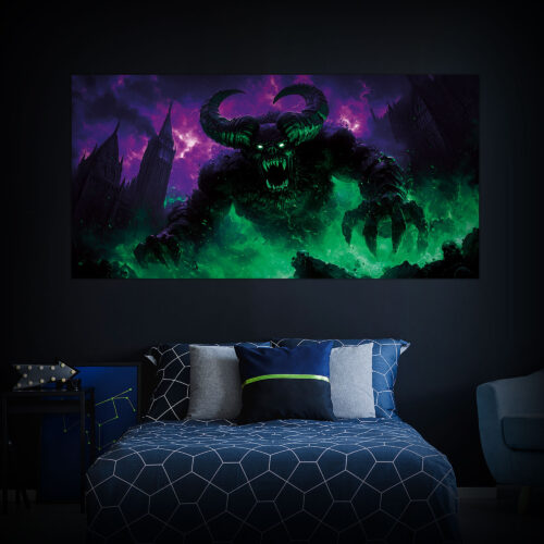 Unleash the darkness with our UV-reactive prints featuring terrifying demons, perfect for setting a sinister Halloween scene. These menacing designs glow under blacklight, creating an eerie and unsettling atmosphere. Choose from solid non-stretchable, solid stretchable, or semi-transparent stretchable fabrics to customize your space with these nightmarish creatures. Whether for walls, furniture, or windows, these demon prints will take your haunted setup to the next level. Dare to summon the demonic energy into your decor and let the terror begin!