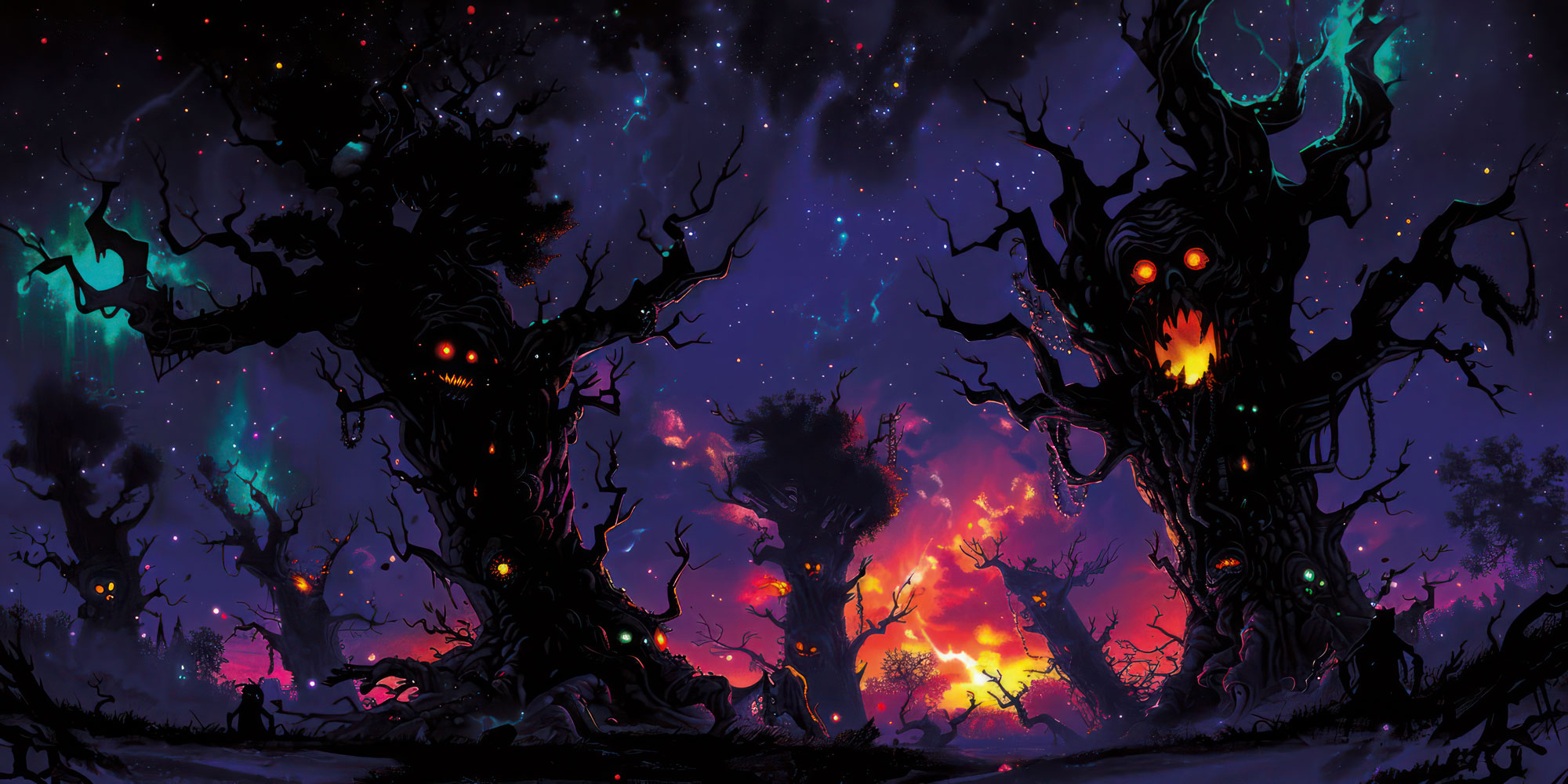 Transform your space into a haunting forest with our UV-reactive prints featuring eerie, living trees. These spine-chilling designs come to life under blacklight, perfect for creating a spooky Halloween atmosphere. Available in solid non-stretchable, solid stretchable, and semi-transparent stretchable fabrics, you can customize the look and feel of your haunted decor. Whether you’re dressing up walls, windows, or furniture, these prints will give your setup an otherworldly glow. Bring the sinister woods indoors and let the nightmare begin!