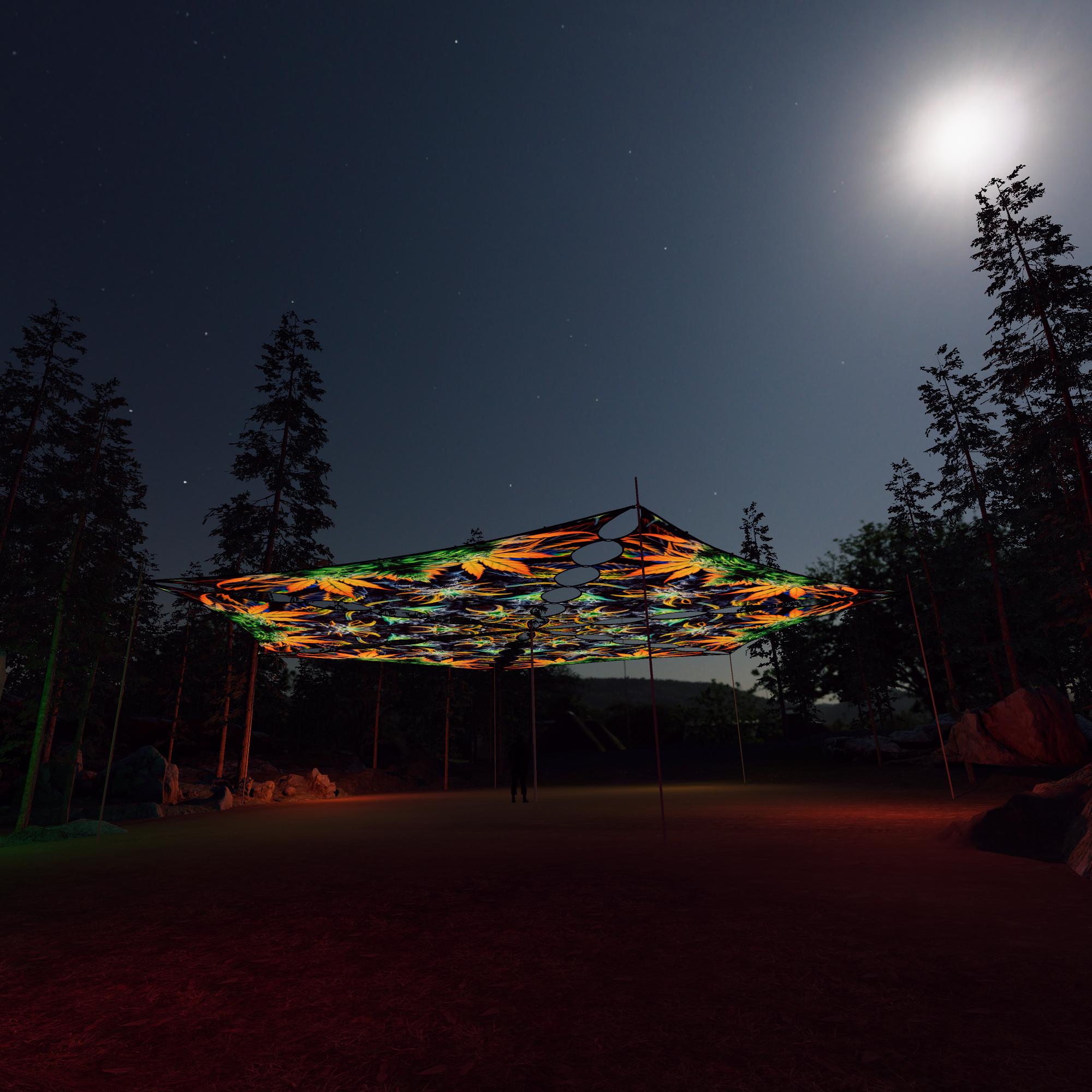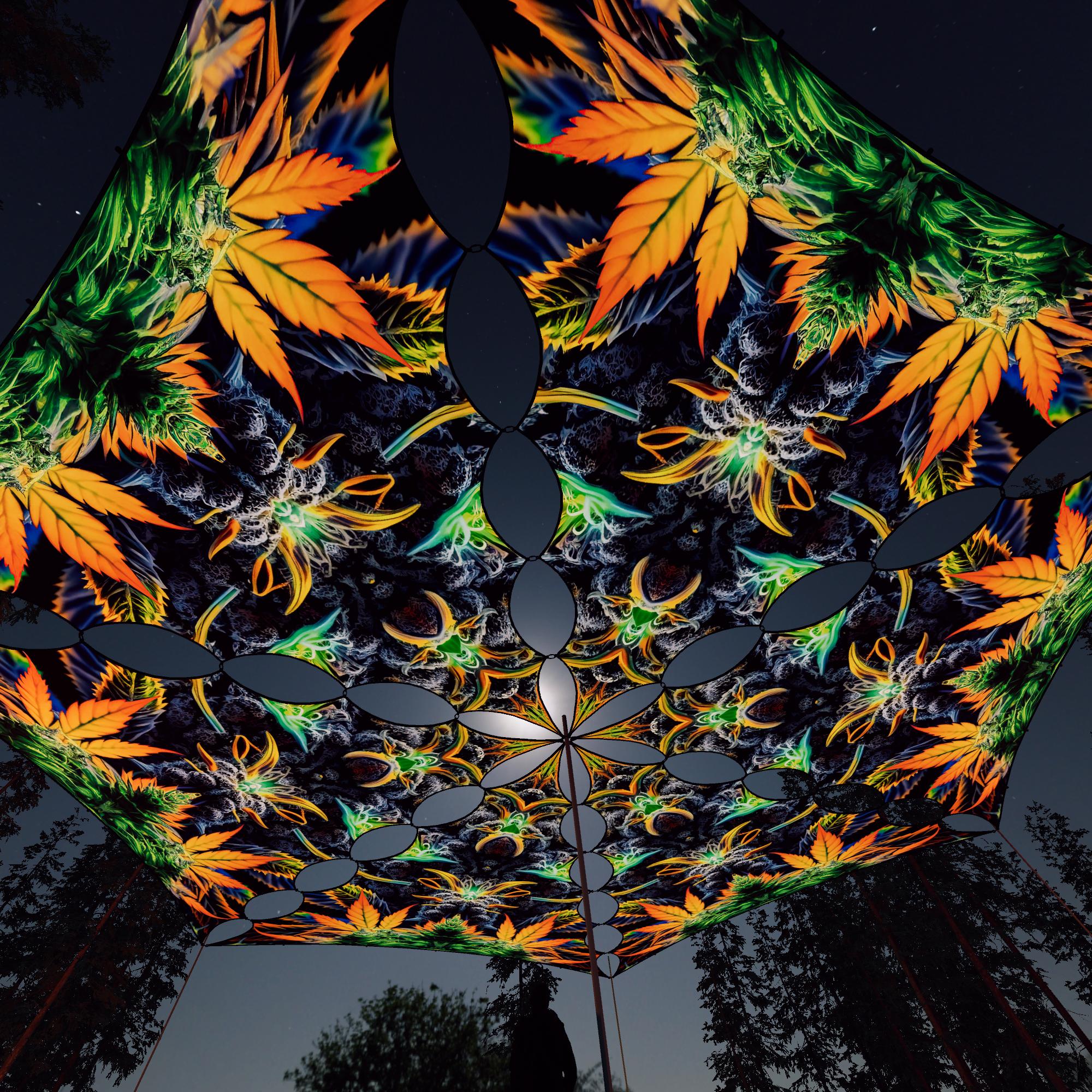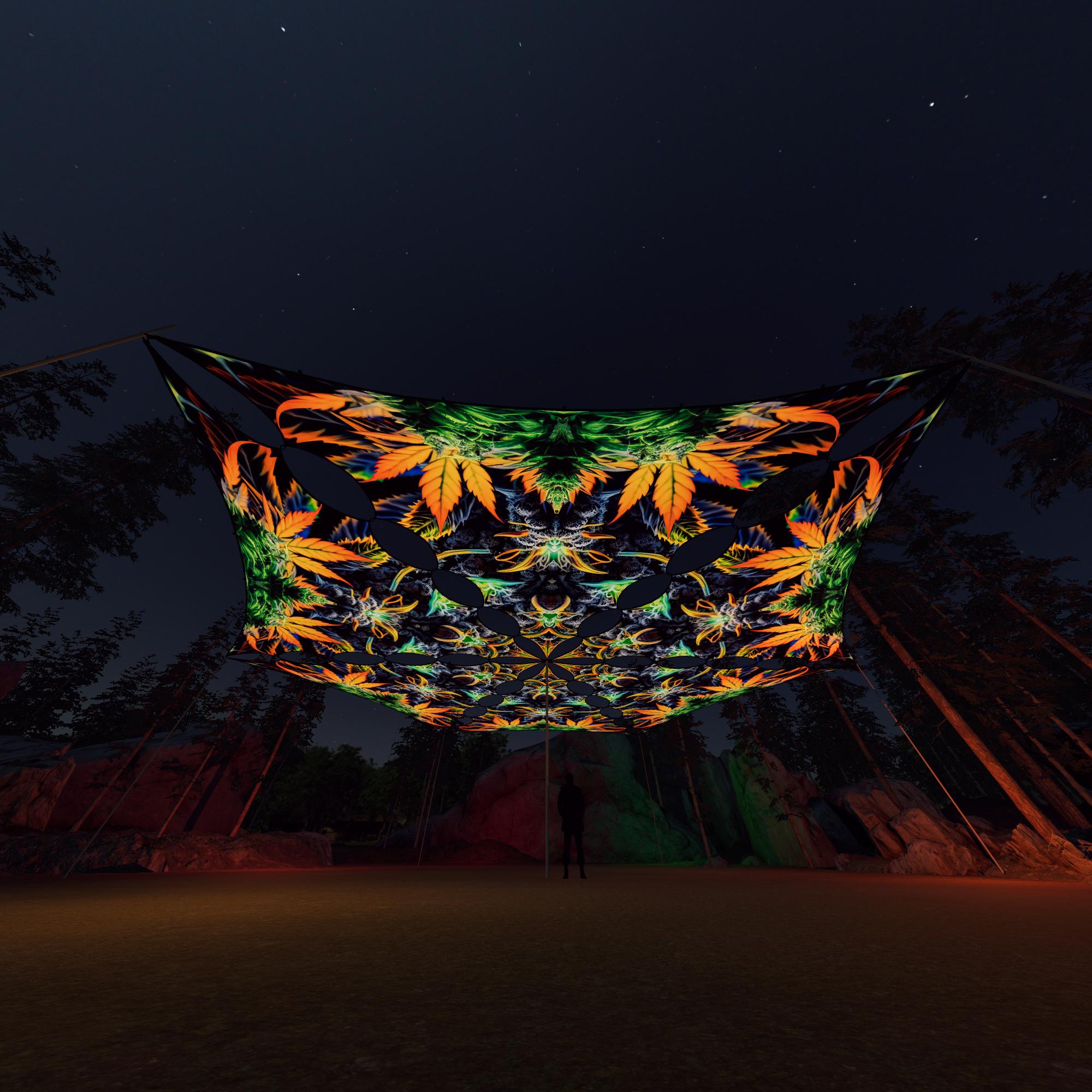 Herbal Harmony – HH-TR01 – 6 Triangles – Ceiling Decoration – Stretchable Fabric UV-Reactive Canopy