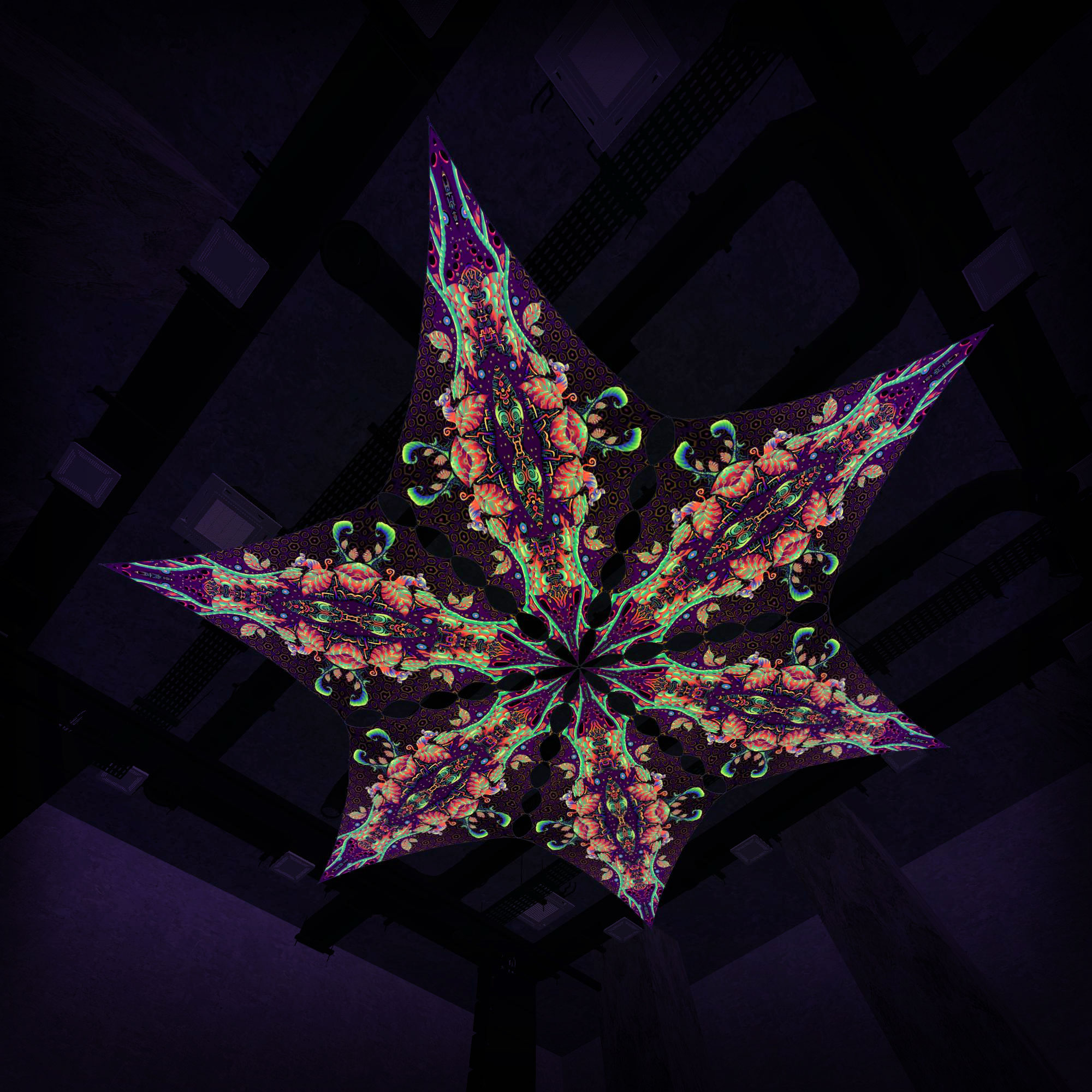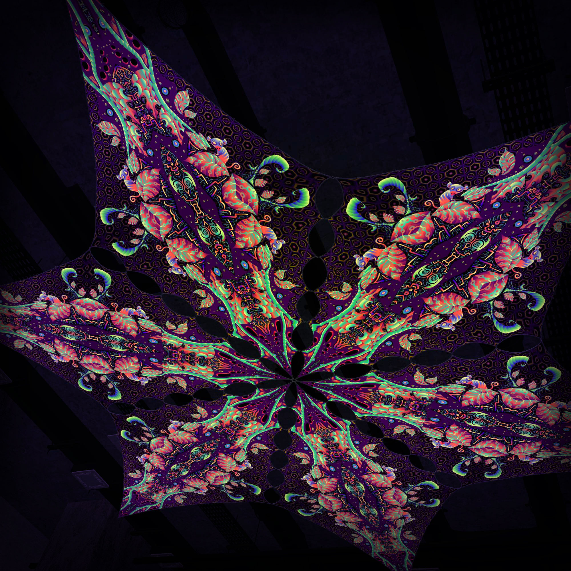 Jungle Snakes – JS-DM02 – 6 Diamonds – Ceiling Decoration – Stretchable Fabric UV-Reactive Canopy
