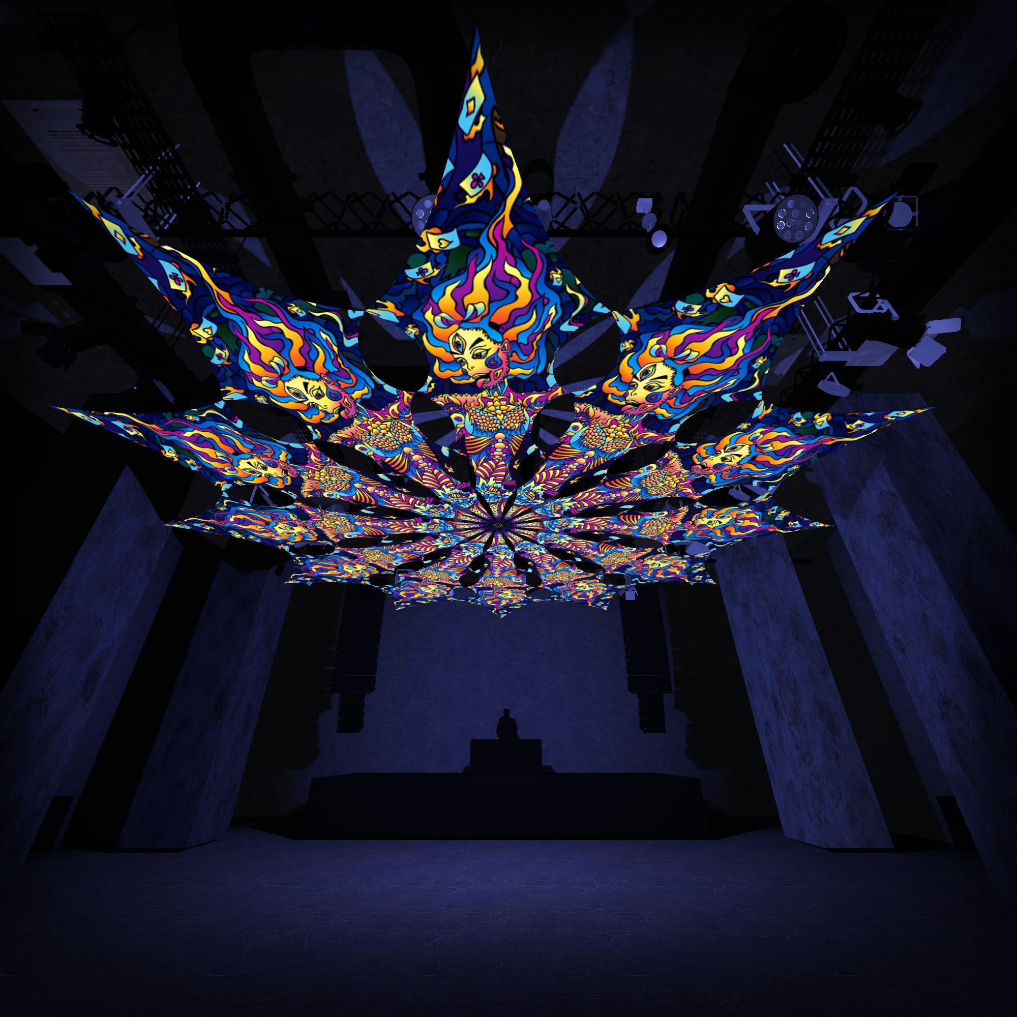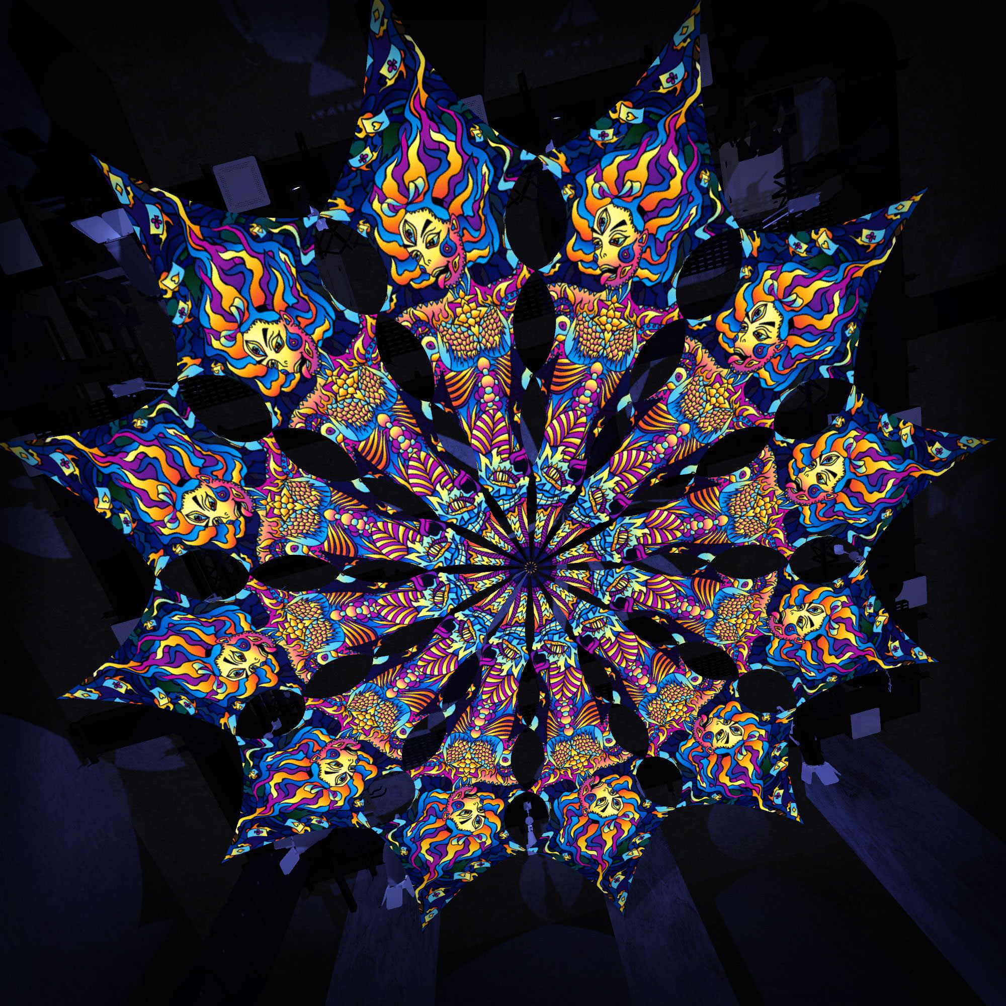 Kali in Acidland – Acid Mother – 12 Petals – Ceiling Decoration – Stretchable Fabric UV-Reactive Canopy