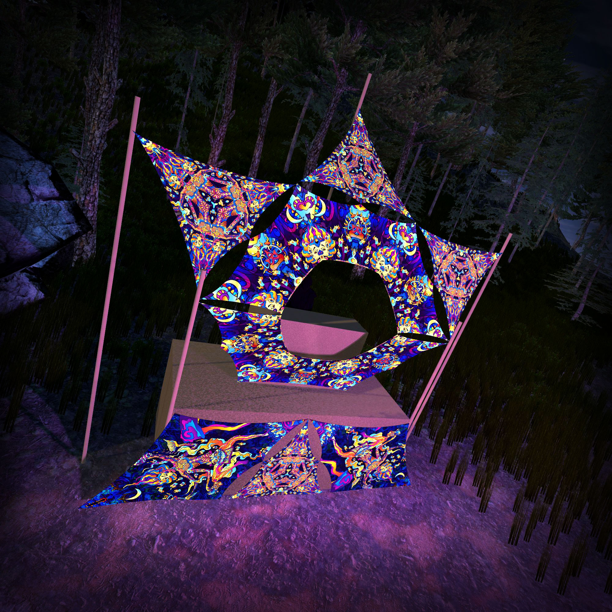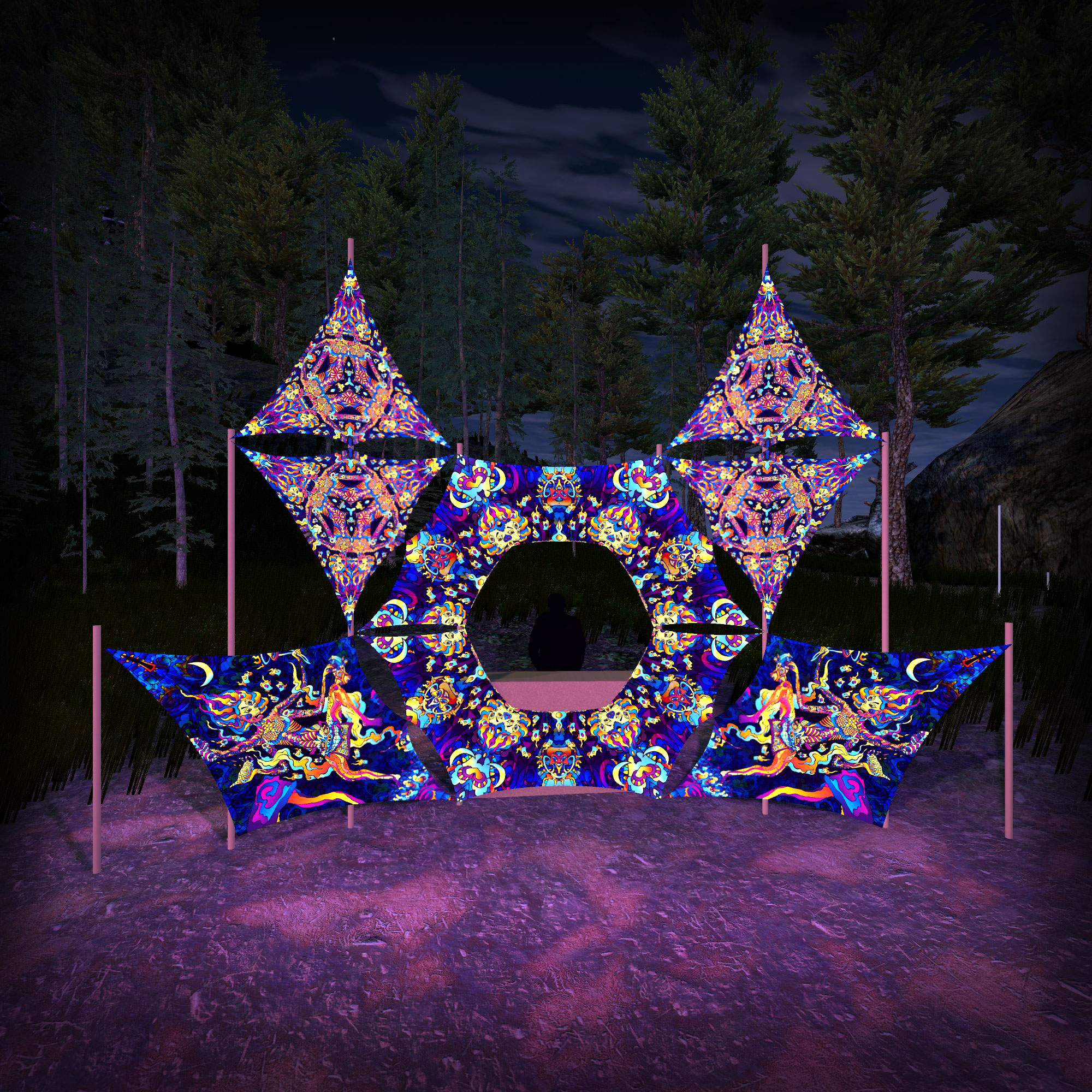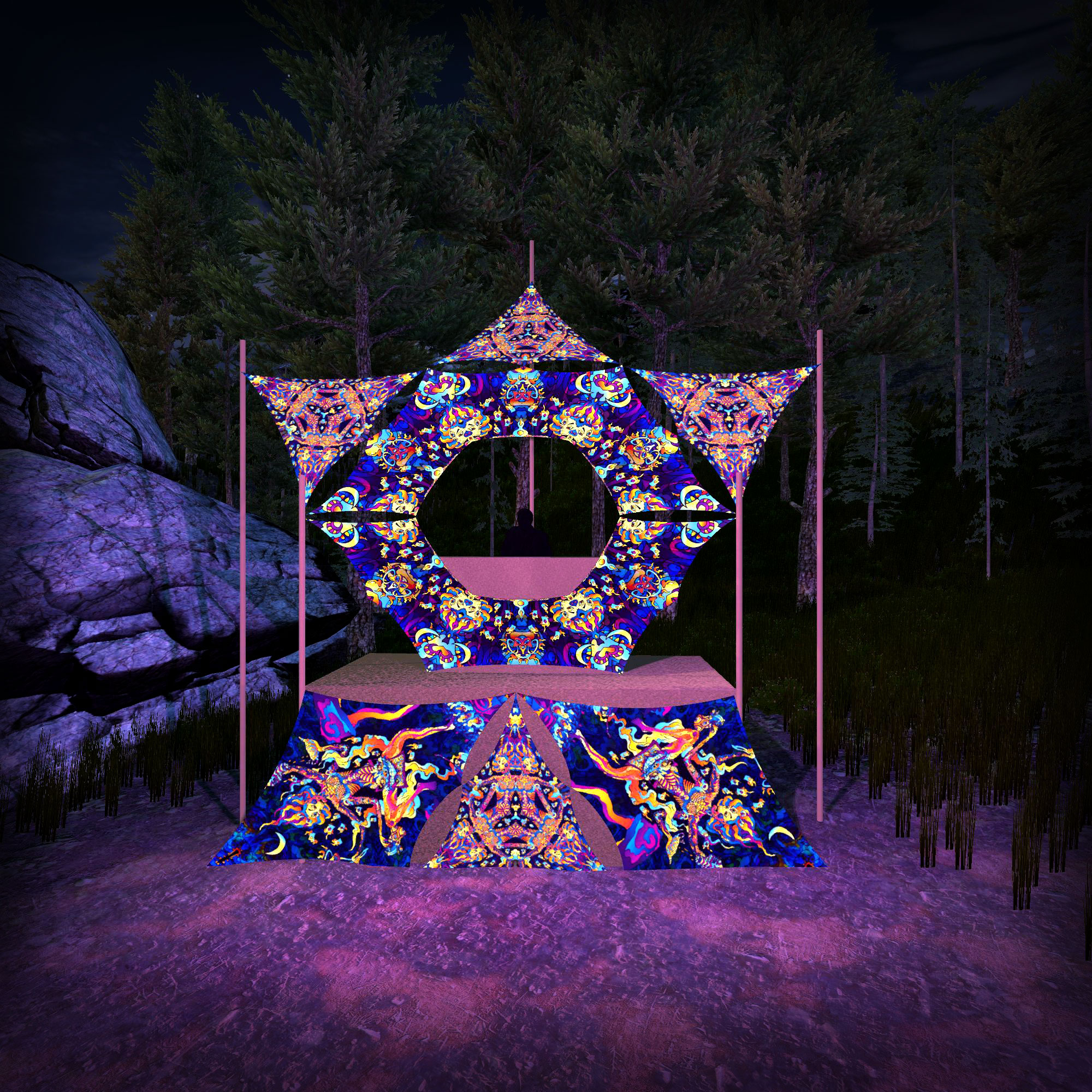 Kali in Acidland Donut DJ-Stage Decor V1 – Psychedelic UV-Reactive Party Decoration