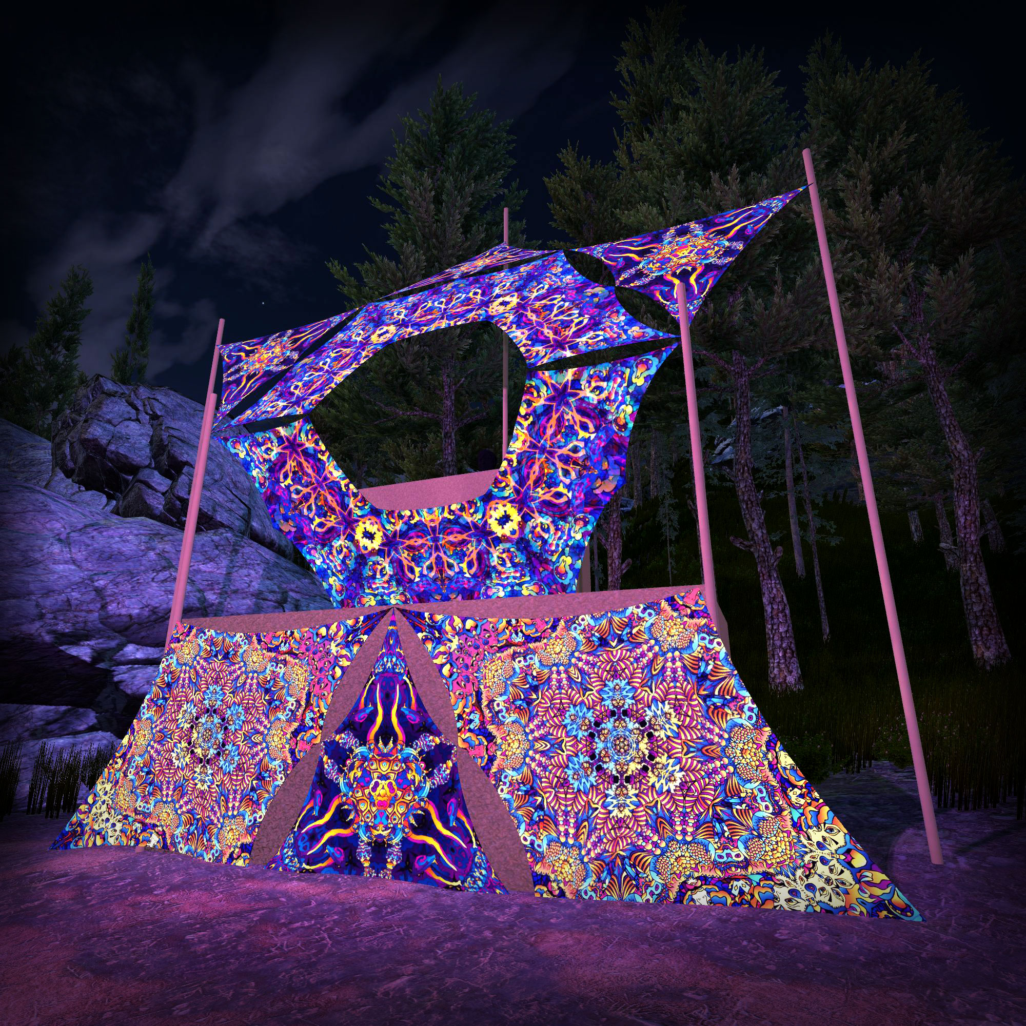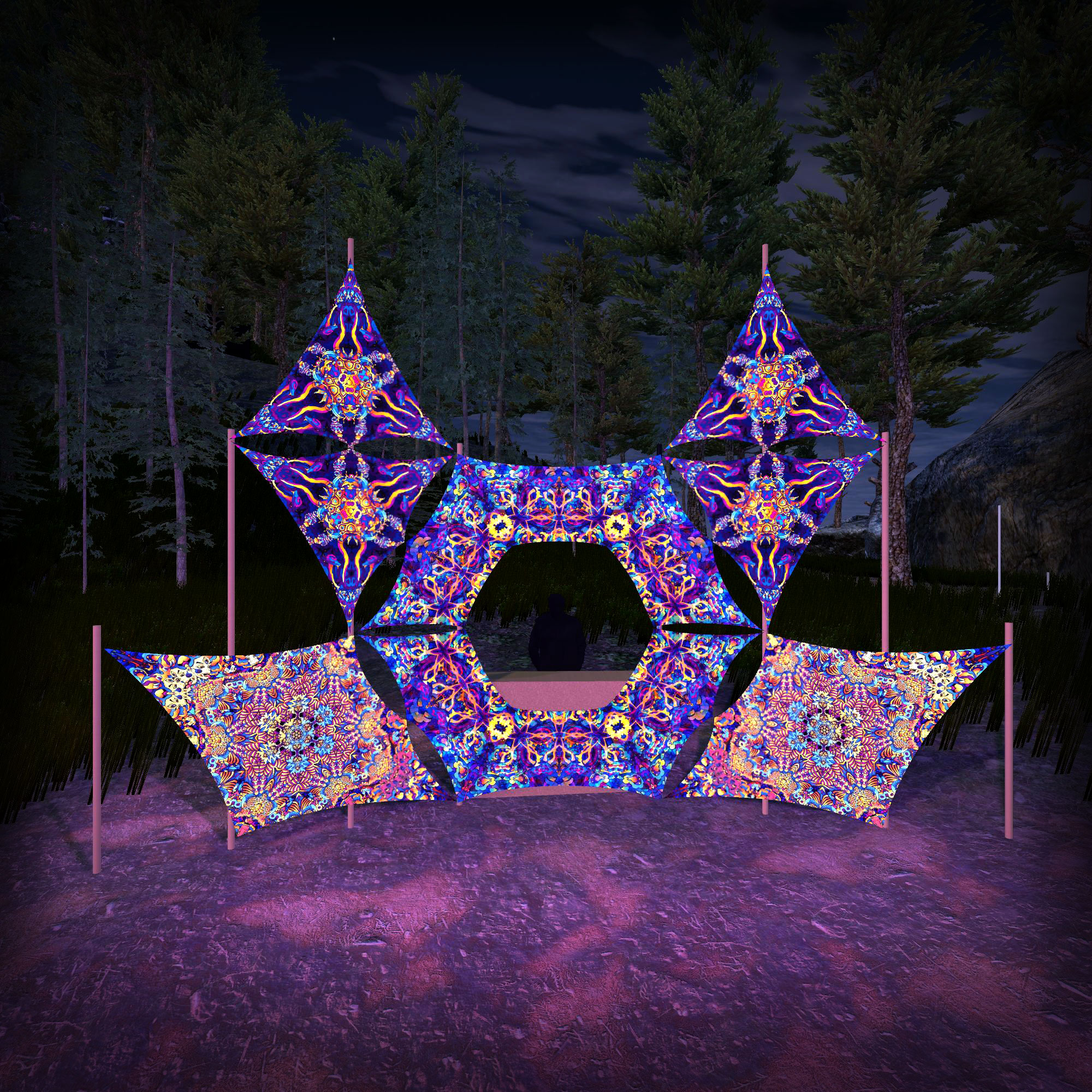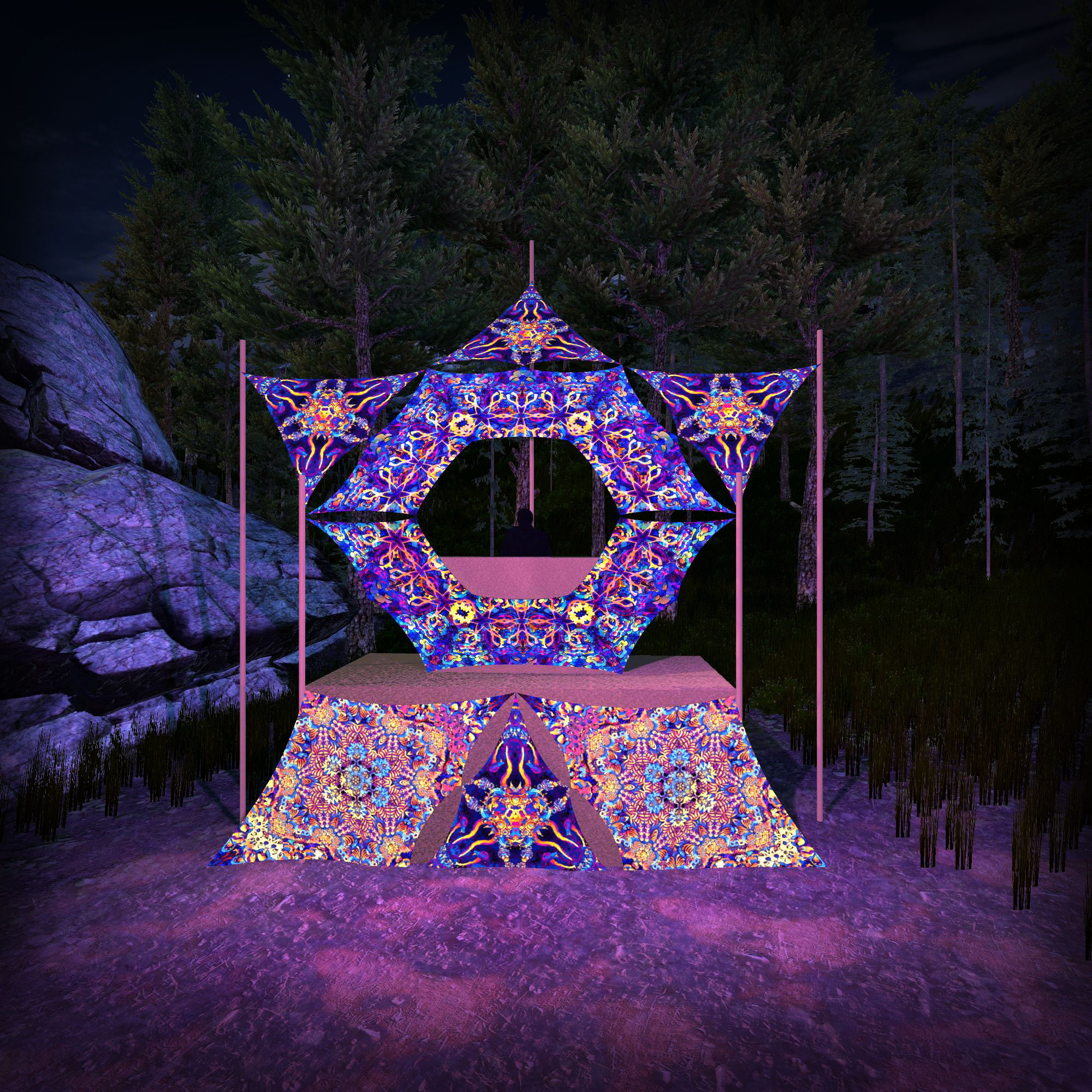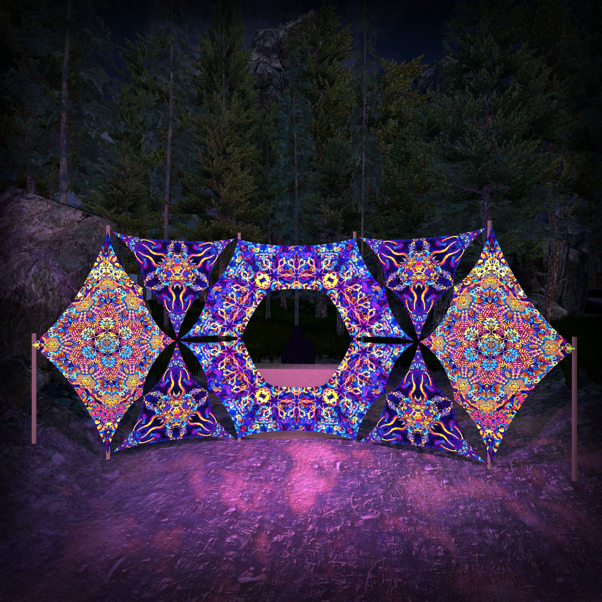 Kali in Acidland Donut DJ-Stage Decor V2 – Psychedelic UV-Reactive Party Decoration