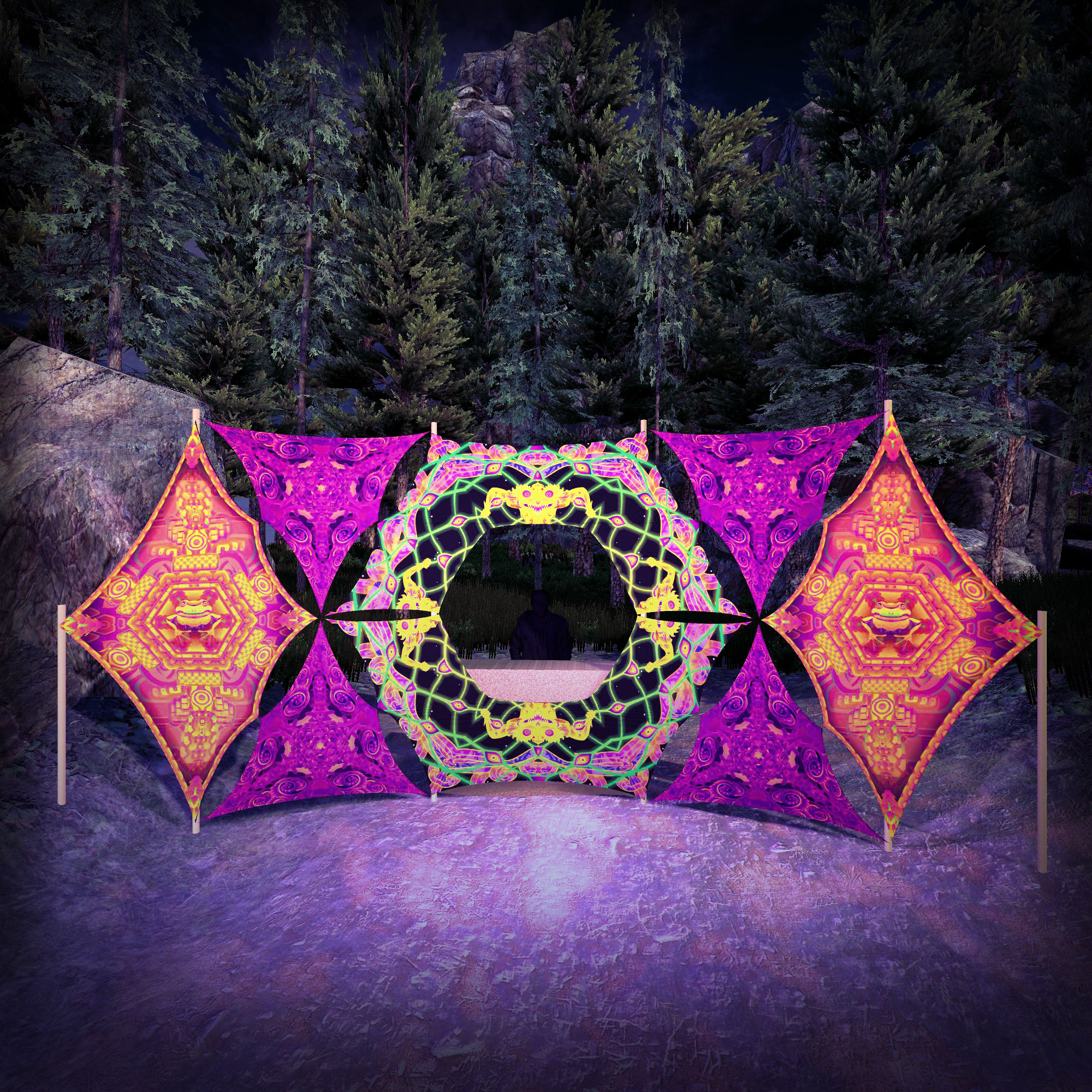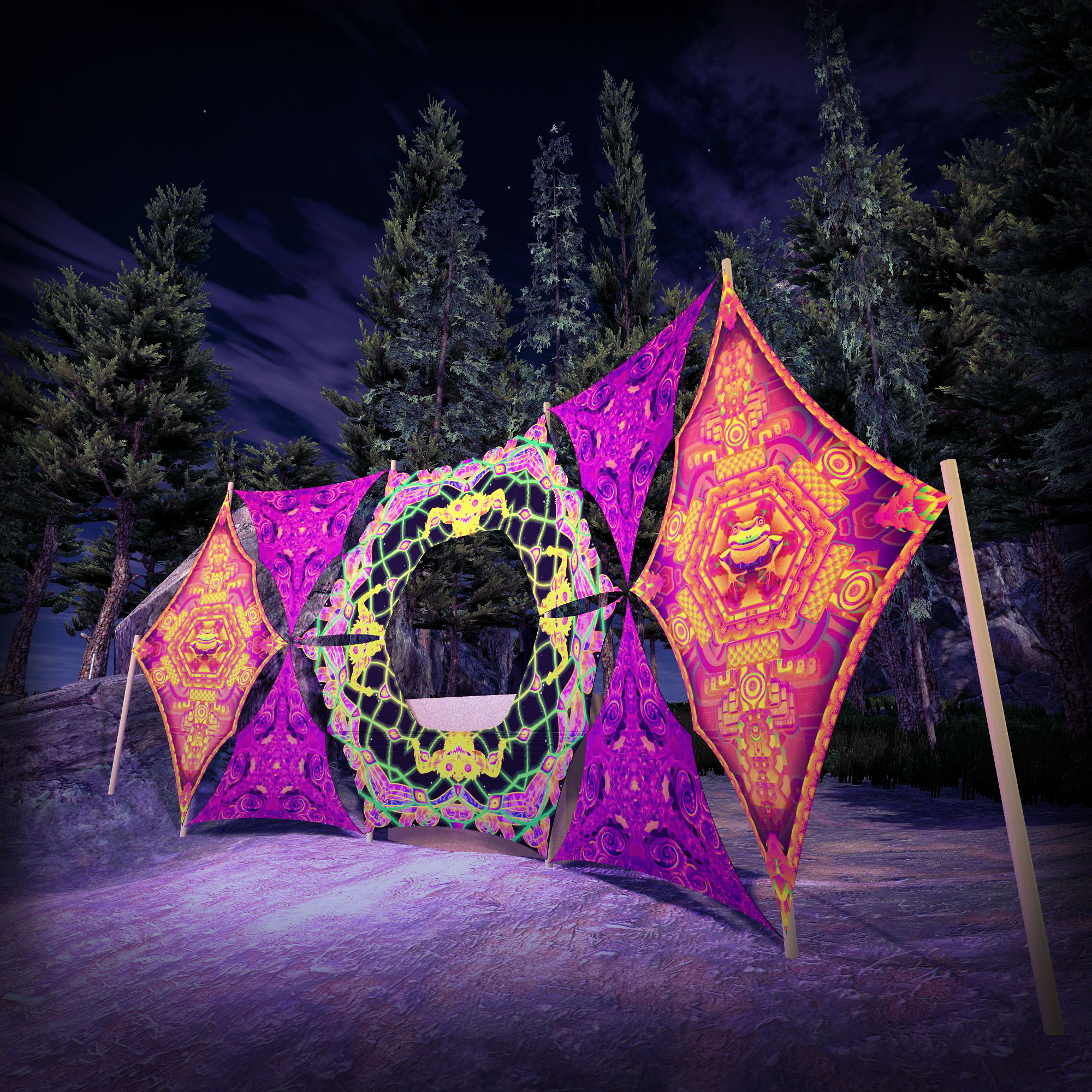 You can build multiple variants of DJ-Stages with this set. We are providing you with 5 layouts but you can surely come up with other ideas! All other canopy parts in this shop also have carabiners so it’s super-easy to connect them together to form beautiful trippy compositions.