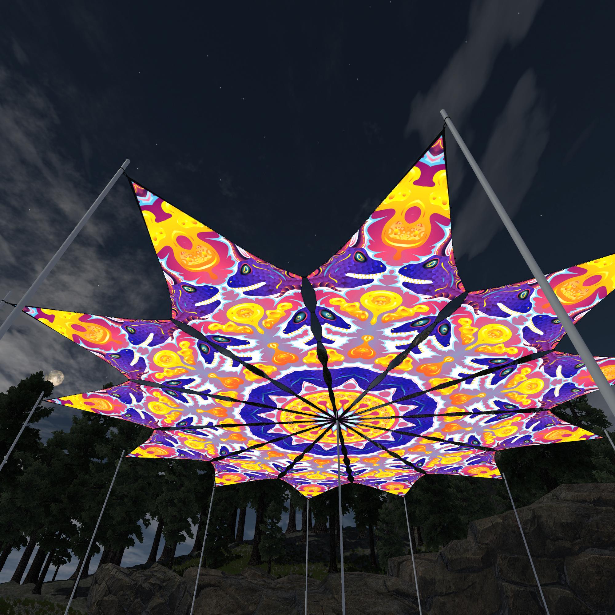 Lord Ganesha – Electric Madness Petals – 12 Petals – Ceiling Decoration – Stretchable Fabric UV-Reactive Canopy