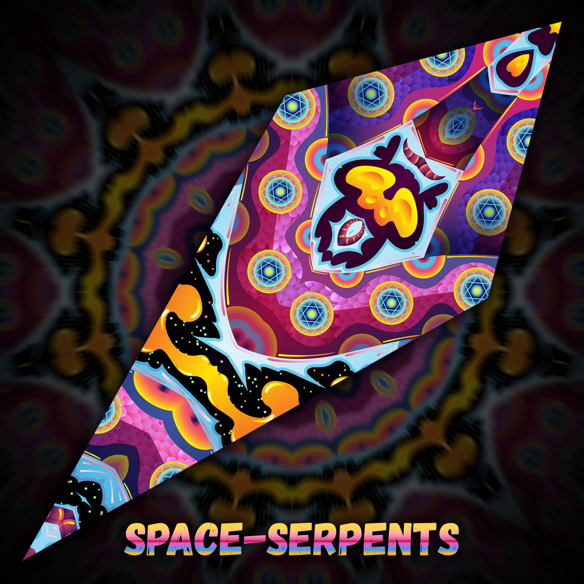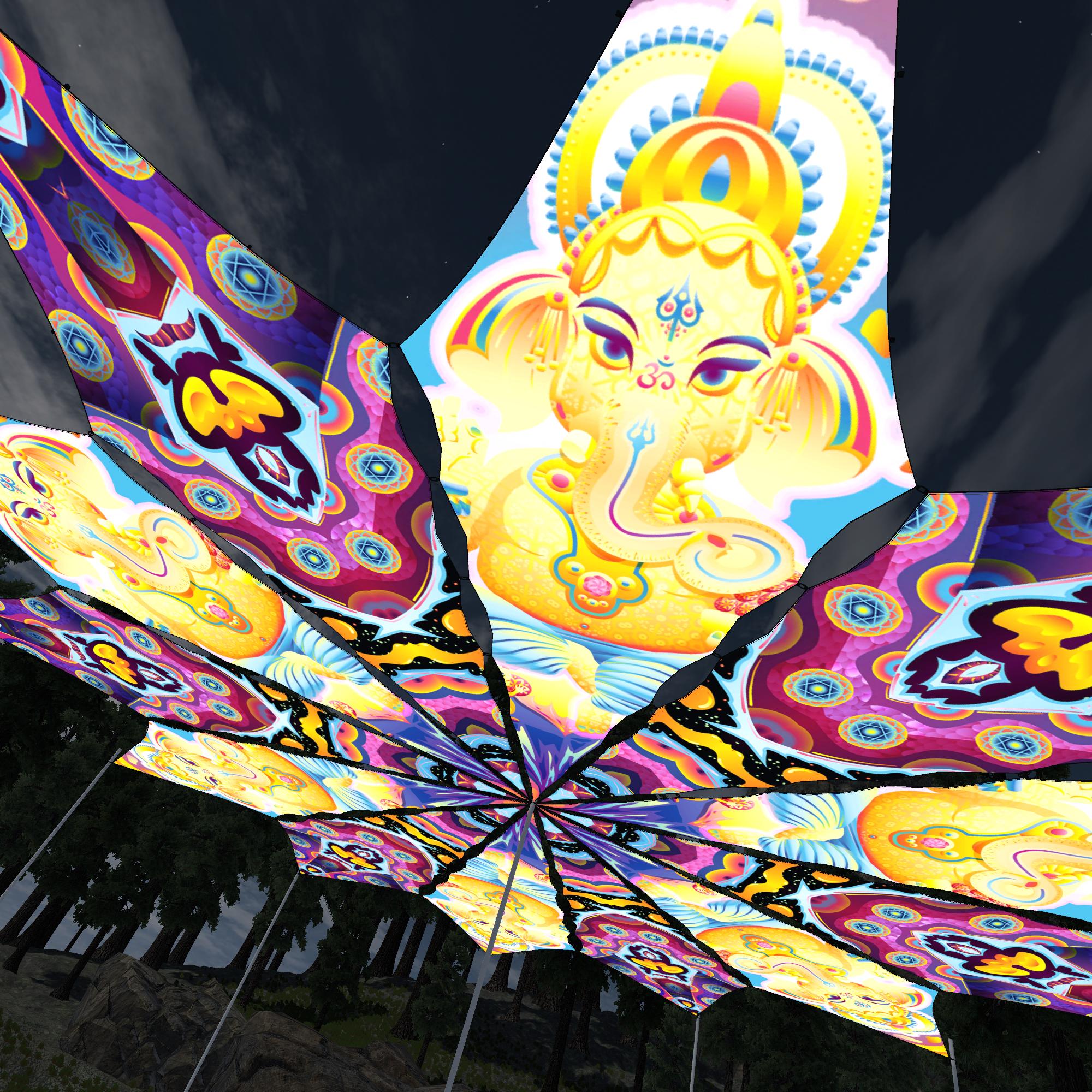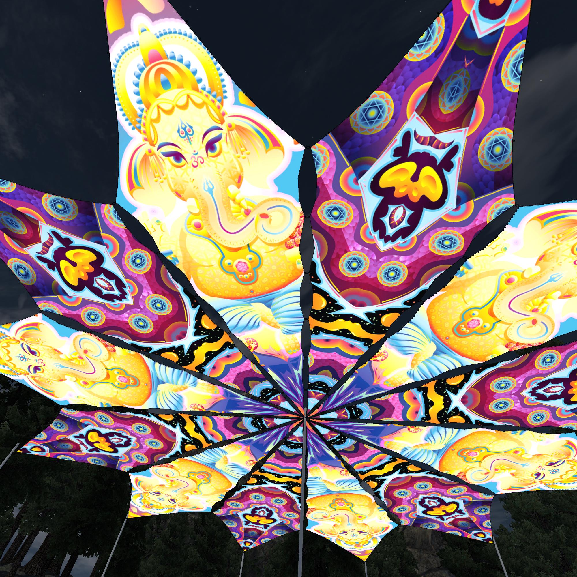 Lord Ganesha – Ganesha Blessing and Space Serpents Petals – 12 Petals – Ceiling Decoration – Stretchable Fabric UV-Reactive Canopy