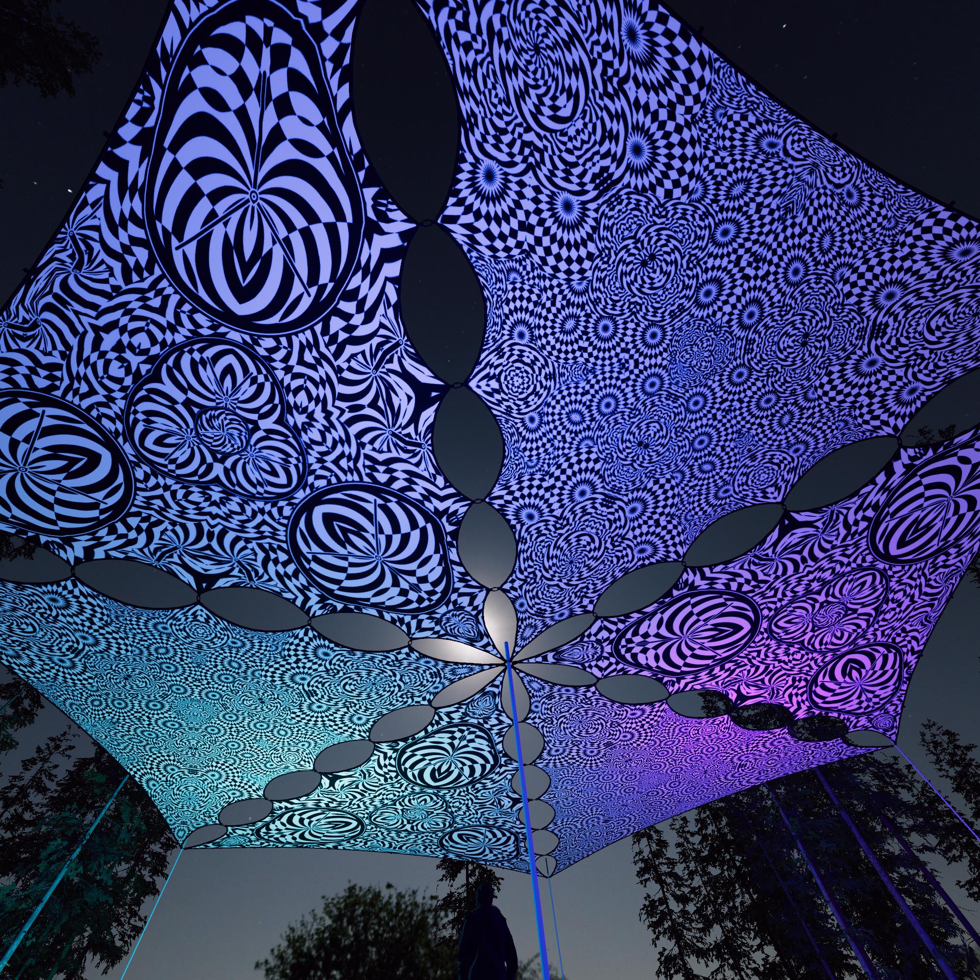 Melting Time – MT-TR02 and MT-TR03 – 6 Triangles – Ceiling Decoration – Stretchable Fabric UV-Reactive Canopy