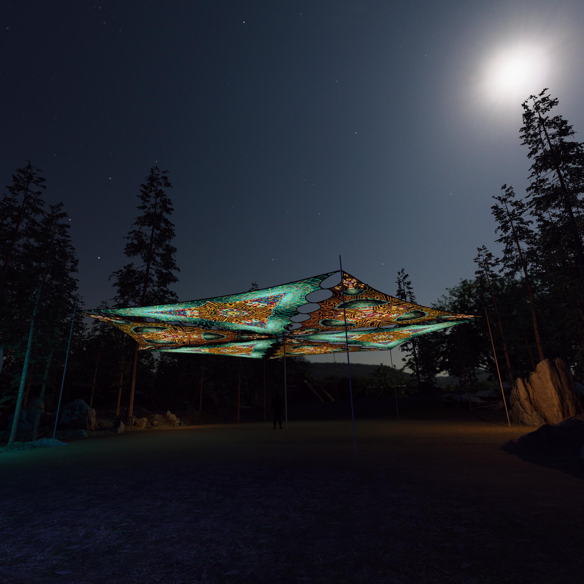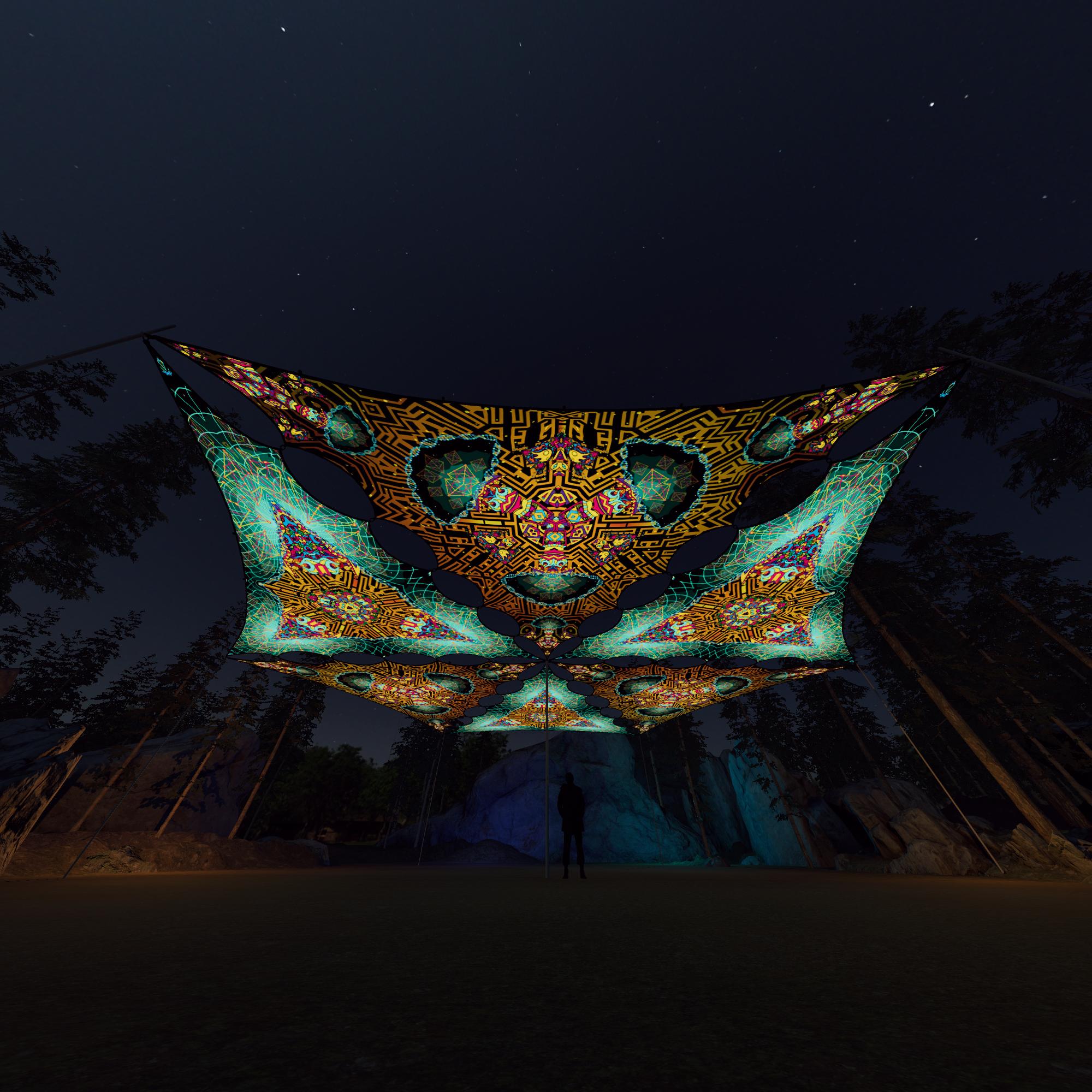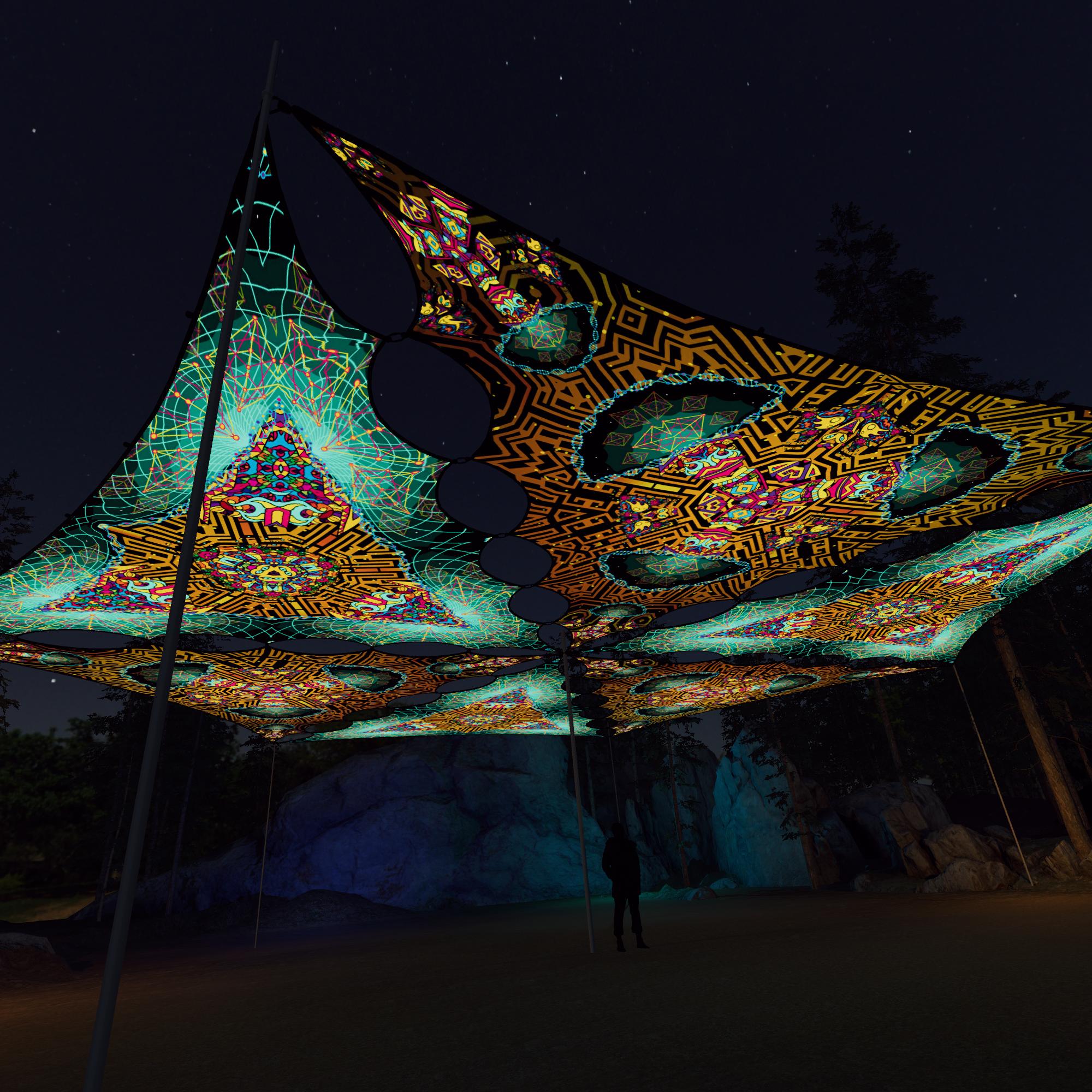 Mushroom God – MG-TR01 and MG-TR02 – 6 Triangles – Ceiling Decoration – Stretchable Fabric UV-Reactive Canopy