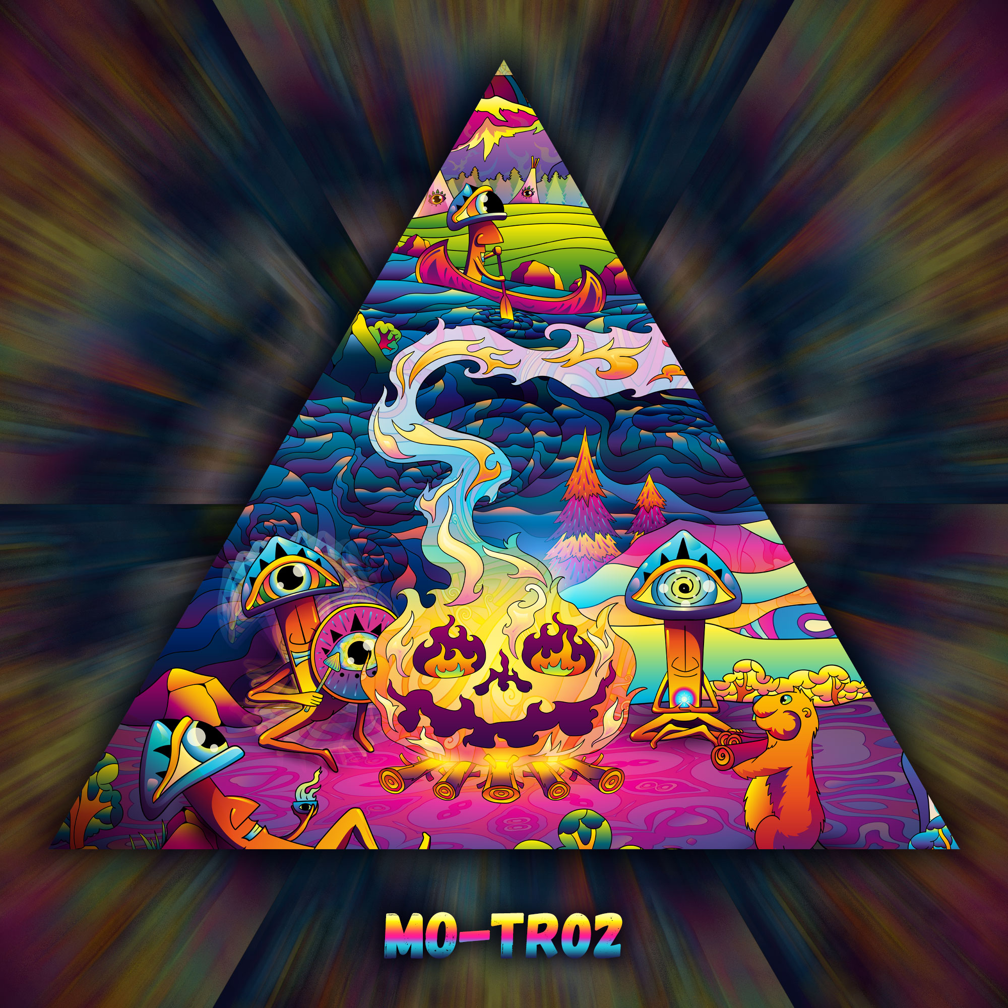 Mushroom Odyssey – MO-TR02 and MO-TR03 – 6 Triangles – Ceiling Decoration – Stretchable Fabric UV-Reactive Canopy