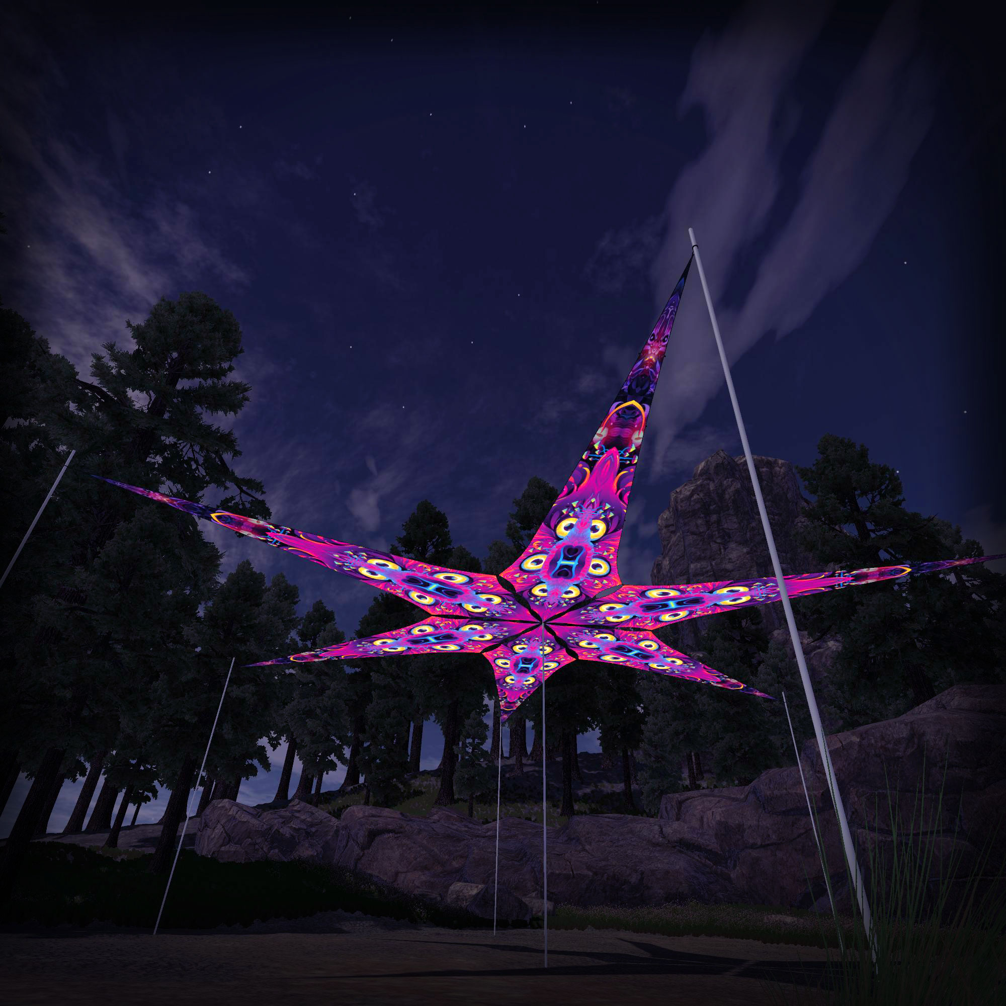 READY FOR SHIPPING – Spirit Realm – 6 Petals Size Medium – Ceiling Decoration – Stretchable Fabric UV-Reactive Canopy